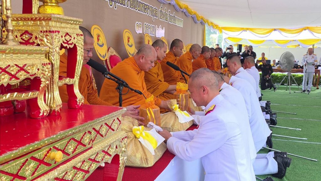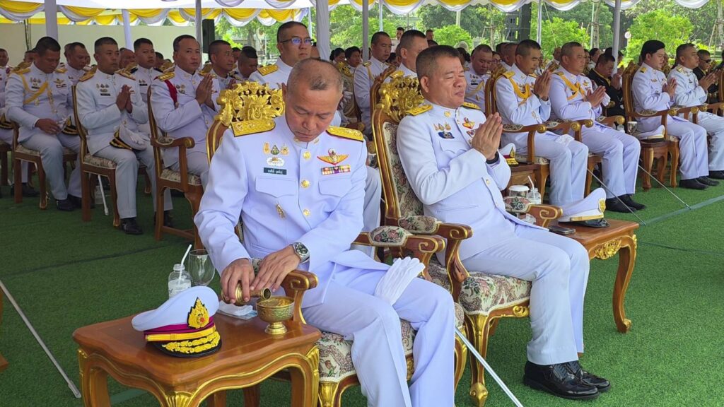 จากนั้น ผู้บัญชาการศูนย์การทหารปืนใหญ่ ยังได้เป็นประธาน นำผู้เข้าร่วมพิธีบำเพ็ญกุศล สวดพระพุทธมนต์ เพื่อถวายเป็นพระราชกุศล ตลอดจนเพื่อน้อมรำลึกในพระมหากรุณาธิคุณของพระองค์ท่าน ตามที่ พระบาทสมเด็จพระเจ้าอยู่หัว ทรงพระกรุณาโปรดเกล้าโปรดกระหม่อม ตามที่รัฐบาลได้ขอพระราชทานพระมหากรุณา และคณะรัฐมนตรี ได้มีมติเมื่อวันที่ 26 กันยายน 2566 ให้กำหนดชื่อวันคล้ายวันสวรรคตพระบาทสมเด็จพระบรมชนกาธิเบศร มหาภูมิพลอดุลยเดชมหาราช บรมนาถบพิตร วันที่ 13 ตุลาคมของทุกปี ว่า “วันนวมินทรมหาราช” ซึ่งแปลว่า วันที่ระลึกถึงพระมหาราชรัชกาลที่ 9 ผู้ยิ่งใหญ่