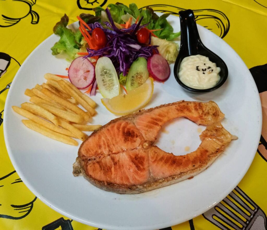 มีครบหลากเมนูทั้งไก่ หมู เนื้อวัว ปลา เบอร์เกอร์เขาก็มีหรือจะข้าวหน้าสเต็ก ข้าวหน้าหมู ข้าวหน้าไก่ ทงคัตสึต่างๆ สลัด ผักโขมอบชีส หอมทอด เครื่องเคียงเพียบ ที่สำคัญเฟรนช์ฟรายอร่อยมาก
