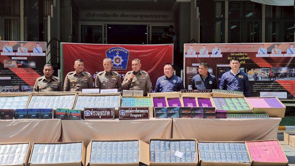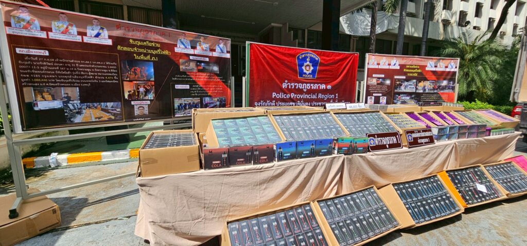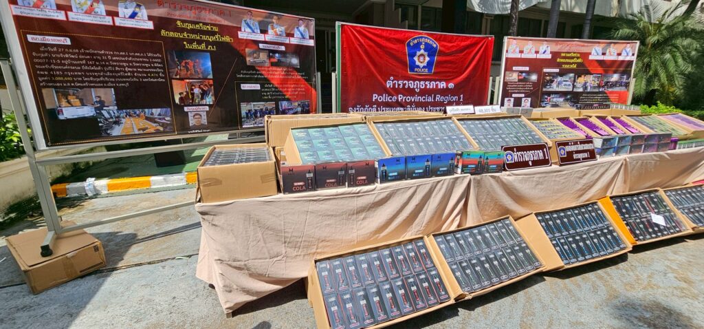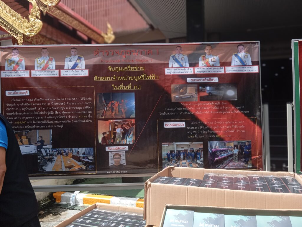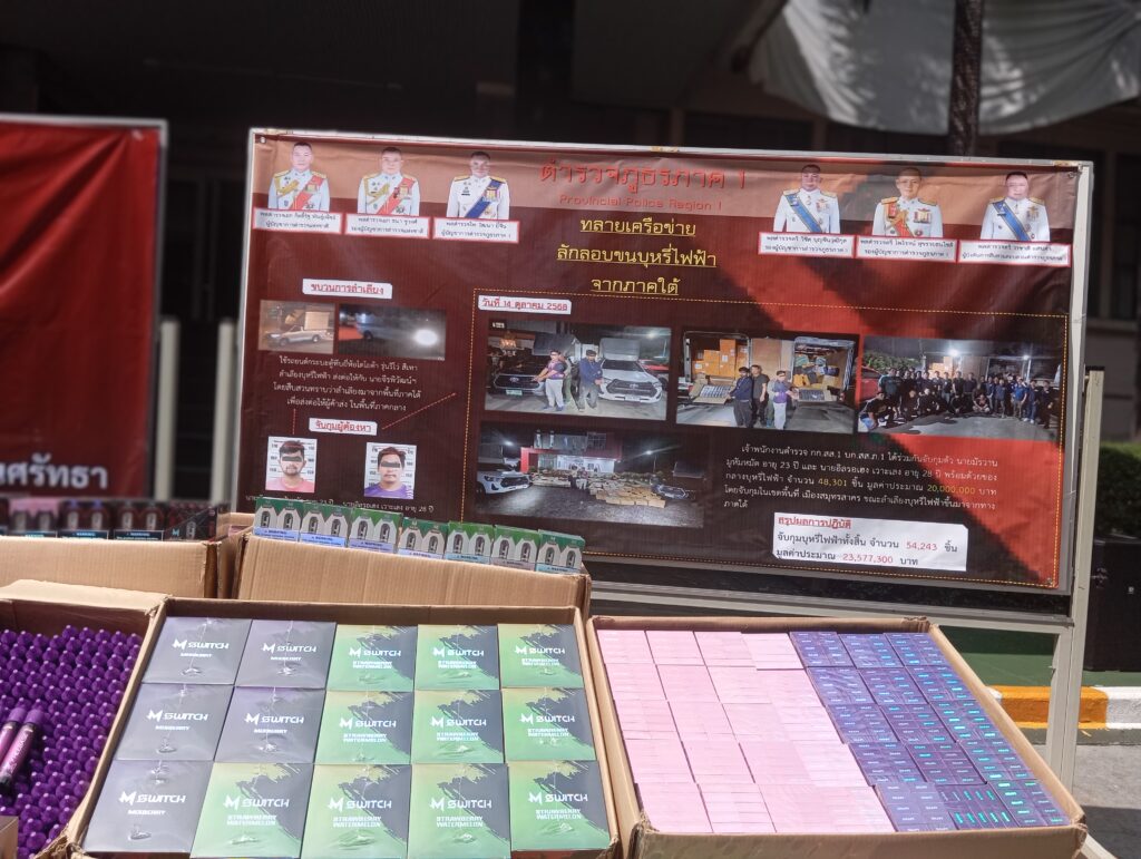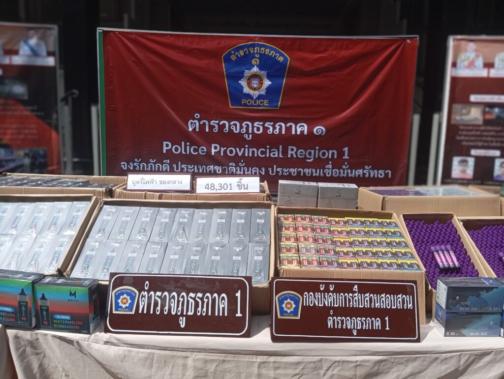 -ตำรวจภูธรภาค 1 โดย พล.ต.ท.วัฒนา ยี่จีน ผบช.ภ.1,พล.ต.ต.วิชิต บุญชินวุฒิกุล รอง ผบช.ภ.1,พล.ต.ต.ไพโรจน์ สุขรวยธนโชติ รอง ผบช.ภ.1 ได้สั่งการให้ทุกหน่วยในสังกัดที่มีอำนาจหน้าที่เร่งรัดสืบสวนปราบปรามผู้กระทำความผิดเกี่ยวกับบุหรี่ไฟฟ้าในเขตพื้นที่ตำรวจภูธรภาค 1 อย่างเด็ดขาดและจริงจัง