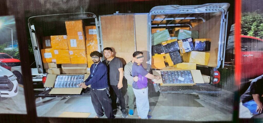 ได้ร่วมกันจับกุมผู้ต้องหาขนบุหรี่ไฟฟ้า จำนวน 2 รายดังนี้ 1.นาย มัรวานฯ อายุ 23 ปี ชาว ต.ลำไพล อ.เทพา จ.สงขลา ในข้อหา “ช่วยซ่อนเร้น ช่วยจำหน่าย ช่วยพาเอาไปเสีย ซื้อ รับจำนำหรือรับไว้ โดยประการใดซึ่งของอันตนพึงรู้ว่าเป็นของมิได้ เสียค่าภาษี หรือของต้องจำกัด หรือของต้องห้าม หรือที่เข้ามาในราชอาณาจักรโดยยังมิได้ผ่านศุลกากรโดยถูกต้อง หรือเป็นของนำเข้ามาในราชอาณาจักรโดยหลีกอากร ตาม พ.ร.บ.ศุลกากร พ.ศ.2560” และ 2.นาย อิลรอเฮงฯ อายุ 28 ปี ชาว ต.ท่าน้ำ อ.ปะนาเระ จ.ปัตตานี ในข้อหา “ช่วยซ่อนเร้น ช่วยจำหน่าย ช่วยพาเอาไปเสีย ซื้อ รับจำนำหรือรับไว้ โดยประการใดซึ่งของอันตนพึงรู้ว่าเป็นของมิได้เสียค่าภาษี หรือของต้องจำกัด หรือของต้องห้าม หรือที่เข้ามาในราชอาณาจักรโดยยังมิได้ผ่านศุลกากรโดยถูกต้อง หรือเป็นของนำเข้ามาในราชอาณาจักรโดยหลีกอากร ตาม พ.ร.บ.ศุลกากร พ.ศ.2560” ของกลางที่ได้จากการตรวจยึด บุหรี่ไฟฟ้า รวมจำนวนทั้งสิ้น 48,301 ชิ้น,รถยนต์กระบะตู้ทึบ ยี่ห้อ โตโยต้า รุ่น รีโว้ สีขาว จำนวน 1 คัน,รถยนต์กระบะตู้ทึบ ยี่ห้อ โตโยต้า รุ่น รีโว้ สีเทา จำนวน 1 คัน,โทรศัพท์มือถือ ยี่ห้อ Nokia จำนวน 1 เครื่อง,โทรศัพท์มือถือ ยี่ห้อ Samsung จำนวน 1 เครื่อง,โทรศัพท์มือถือ ยี่ห้อ Oppo จำนวน 1 เครื่อง,โทรศัพท์มือถือ ยี่ห้อ Samsung จำนวน 1 เครื่อง โดยสามารถจับกุมได้ริมถนนสาธารณะ หมู่ 6 ต.บางน้ำจืด อ.เมืองสมุทรสาคร จ.สมุทรสาคร