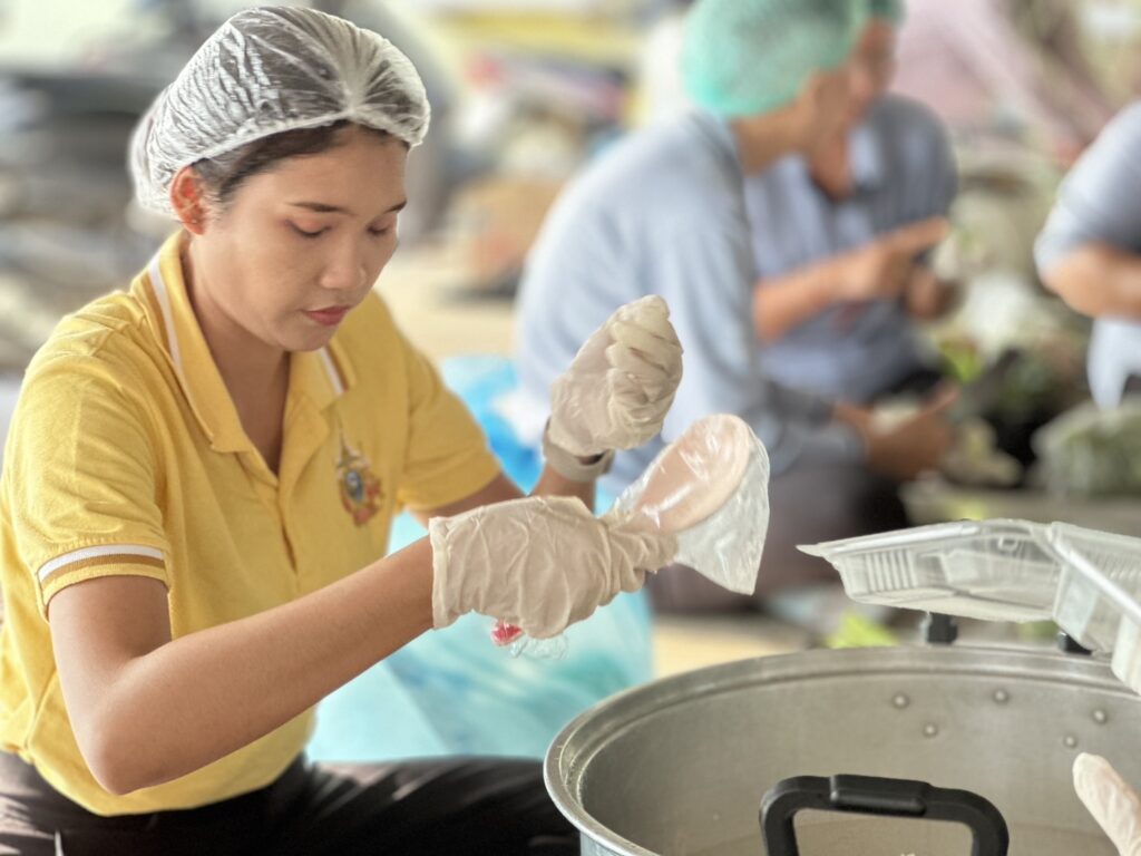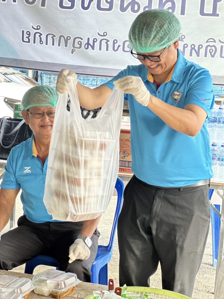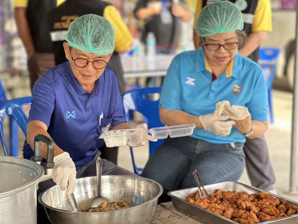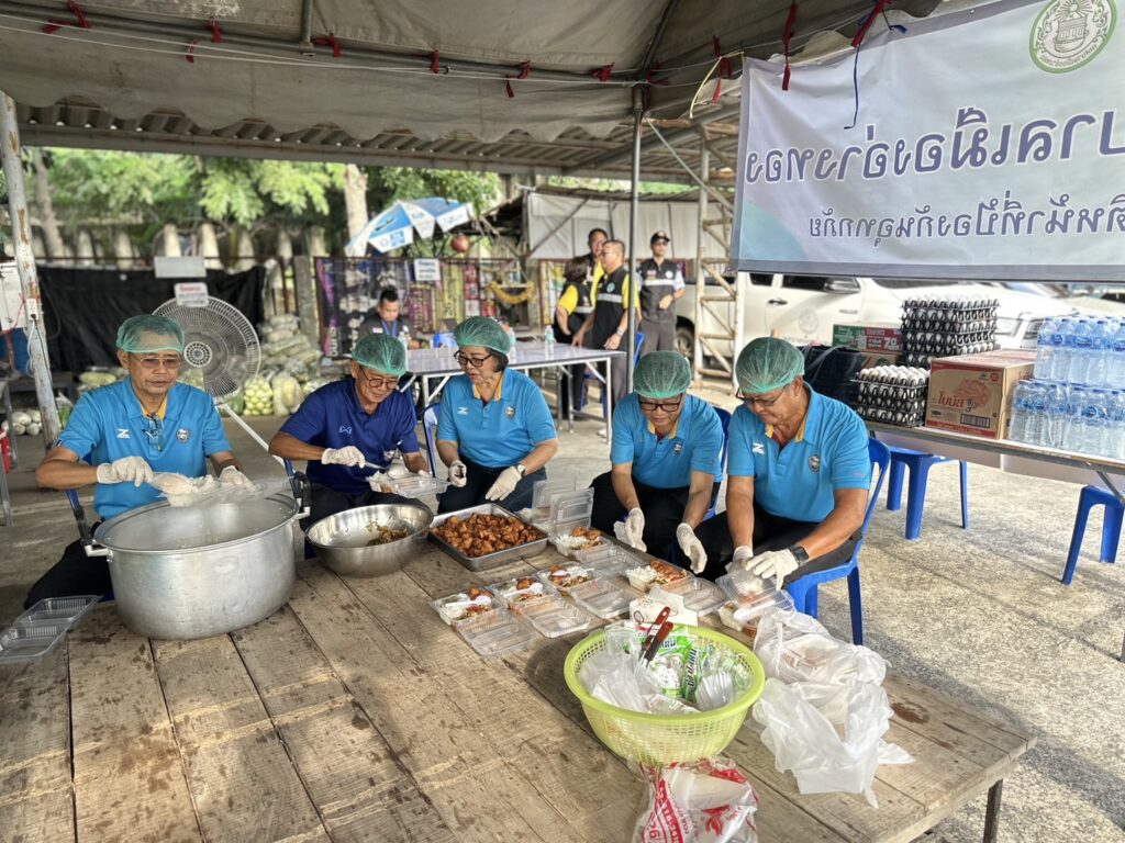 นำทีมเจ้าหน้าที่และพนักงานเทศบาล ดำเนินงานโรงครัวด้วยความทุ่มเท ตั้งแต่เตรียมวัตถุดิบ ปรุงอาหาร ไปจนถึงการส่งมอบข้าวกล่องให้กับเจ้าหน้าที่และประชาชนในพื้นที่น้ำท่วมอย่างต่อเนื่อง