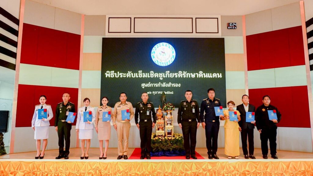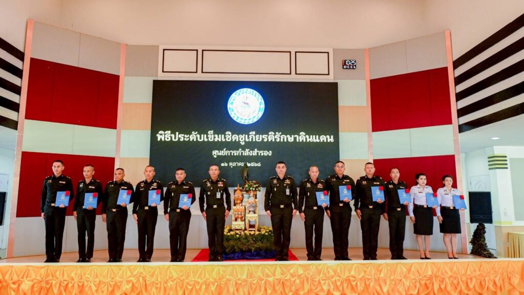 16 ต.ค. 68 เวลา 10.00 นาฬิกา พล.ต. อินทรา กานุวงษ์ ผบ.ศสร. กรุณาเป็นประธานในพิธีมอบเข็มเชิดชูเกียรติรักษาดินเเดน ให้กับกำลังพล สังกัด ศสร. และผู้ที่ทำคุณประโยชน์ต่อกิจการของ ศสร. จำนวน 33 คน โดยจัดพิธีต่อเบื้องหน้าพระพักตร์ พระบรมรูป พระบาทสมเด็จพระมงกุฎเกล้าเจ้าอยู่หัว เพื่อเป็นเกียรติยศ ศักดิ์ศรี และสร้างเสริมสิริมงคลให้แก่ผู้ที่ได้รับการประดับฯ ณ สโมสร ศสร.