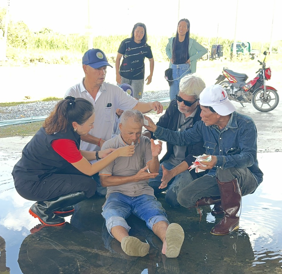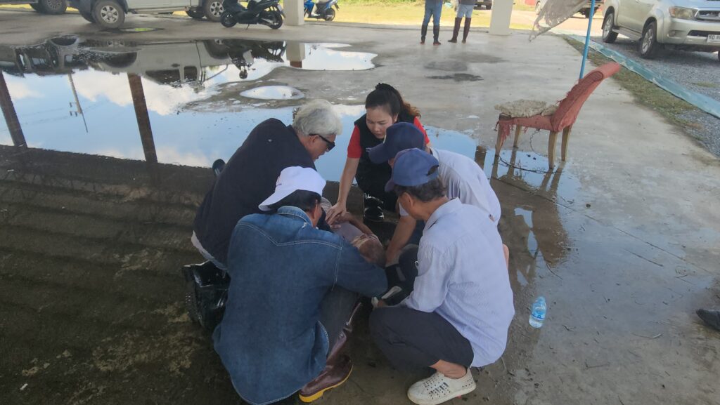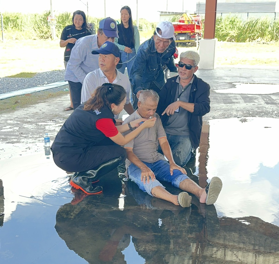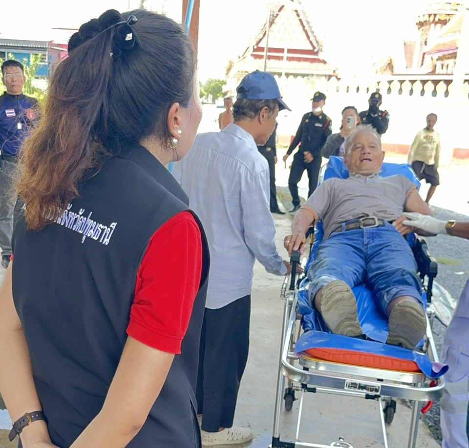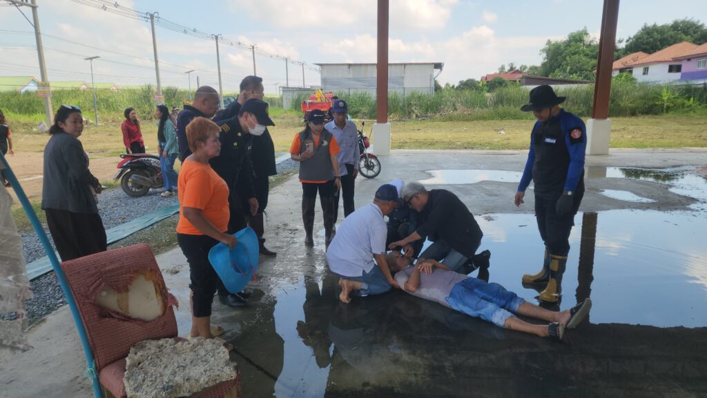 ต่อมา ที่ ซอยบงกช 55 (ข้างวัดกล้าชะอุ่ม) ตำบลคลองสอง อำเภอคลองหลวง จังหวัดปทุมธานี นายยุทธศักดิ์ ชูประเสริฐ นายกเทศมนตรีเมืองคลองหลวง พร้อมด้วย นายทองสุก แสนจักร สมาชิกสภา อบจ.เขตเลือกตั้งที่ 3 อ.คลองหลวง นางสาวพรปริญญา ศรีจันทร์ สมาชิกสภา อบจ.เขตเลือกตั้งที่ 5 อ.คลองหลวง คณะผู้บริหารเทศบาลเมืองคลองหลวง ได้ลงพื้นที่ติดตามความคืบหน้า การแก้ไขปัญหาน้ำท่วมขัง โดยมีประชาชนที่อาศัยอยู่ในซอยบงกช 55 ออกมาต้อนรับและขอบคุณ ทม.คลองหลวง และ อบจ.ปทุมธานี ที่ไม่ทอดทิ้ง หลังเข้ามาดำเนินการแก้ไขปัญหาน้ำท่วมขังในพื้นที่ ซึ่งได้สั่งการให้นำเครื่องสูบน้ำมาเพิ่มอีก 1 เครื่อง เพื่อเร่งระบายน้ำ ซึ่งในขนะที่กำลังพูดคุยอยู่ ได้เกิดอุบัติเหตุ ชายสูงอายุได้ลื่นล้ม จากน้ำท่วมหัวฟาดพื้นหัวแตก ไม่ได้สติ จน นายยุทธศักดิ์ ชูประเสริฐ นายกเทศมนตรีเมืองคลองหลวง ต้องสั่งการด่วนให้รถกู้ชีพ ทม.คลองหลวงเร่งเดินทางมาดูอาการ พร้อมทั้งมี นางสาวพรปริญญา ศรีจันทร์ สมาชิกสภา อบจ.เขตเลือกตั้งที่ 5 อ.คลองหลวง และ นายทองสุก แสนจักร สมาชิกสภา อบจ.เขตเลือกตั้งที่ 3 เข้าช่วยเหลือ ปฐมพยาบาลเบื้องต้น โดยไม่ทำการเคลื่อนย้ายเนื่องจากไม่ทราบว่าอาการบาดเจ็บหนักแค่ไหน จึงได้ช่วยกันห้ามเลือด ล้างแผลด้วยน้ำสะอาด ประคองให้ศีรษะพ้นจากน้ำ จนกระทั่งผู้บาดเจ็บได้สติ จึงรีบให้ กู้ชีพ ทม.คลองหลวง เร่งนำส่งโรงพยาบาล ล่าสุดอาการปลอดภัยแล้ว ซึ่งหลังจากเหตุการณ์คลีคายแล้ว ทางนายยุทธศักดิ์ ชูประเสริฐ นายกเทศมนตรีเมืองคลองหลวง ได้ เดินทางกลับไปที่ ซอย บงกช 48 (ซอยประดู่แดง) ตำบลคลองสอง อำเภอคลองหลวง จังหวัดปทุมธานี อีกครั้งเนื่องจาก ทาง นางสาวพรปริญญา ศรีจันทร์ สมาชิกสภา อบจ.เขตเลือกตั้งที่ 5 อ.คลองหลวง ได้ประสานขอเครื่องสูบน้ำจากทาง อบจ.ปทุมธานี ทำให้ ฝ่ายป้องกันและบรรเทาสาธารณภัย อบจ.ปทุมธานี รีบเดินทางลงพื้นที่ ตามคำสังการของพล.ต.ท.คำรณวิทย์ ธูปกระจ่าง นายก อบจ.ปทุมธานี และ พร้อมนำเครื่องสูบน้ำจากทาง อบจ.ปทุมธานี มาติดตั้งเพื่อเร่งสูบน้ำออกจากชุมชน ซอย บงกช 48 (ซอยประดู่แดง) ต่อไป