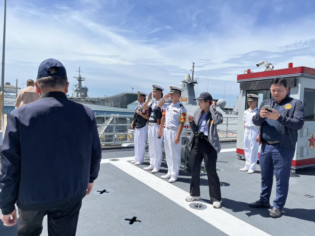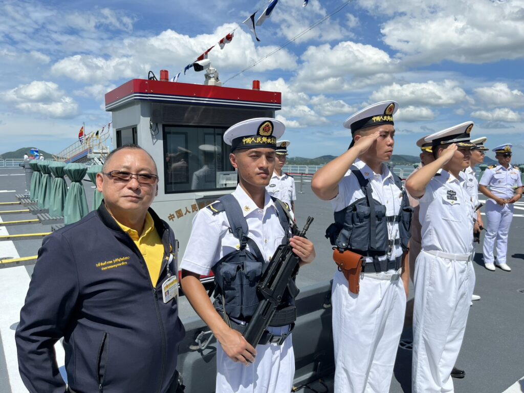 ในการนี้ พลเรือโท ภาณุมาศ ธนะพาณิช ผู้บัญชาการฐานทัพเรือสัตหีบ และ นาวาเอกอาวุโส สวี เจี้ยนกั๋ว รองผู้บัญชาการโรงเรียนนายเรือต้าเหลียน ในฐานะผู้บังคับหมู่เรือฝึกนักเรียนนายเรือจีน ให้การต้อนรับ พลเอก สวัสดิ์ ทัศนา และคณะเดินทาง