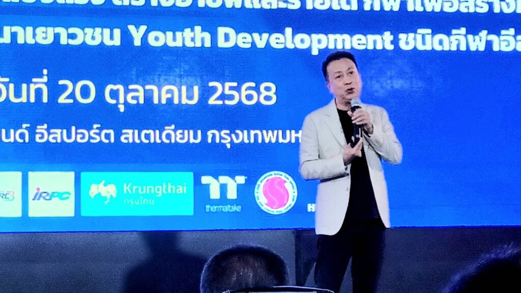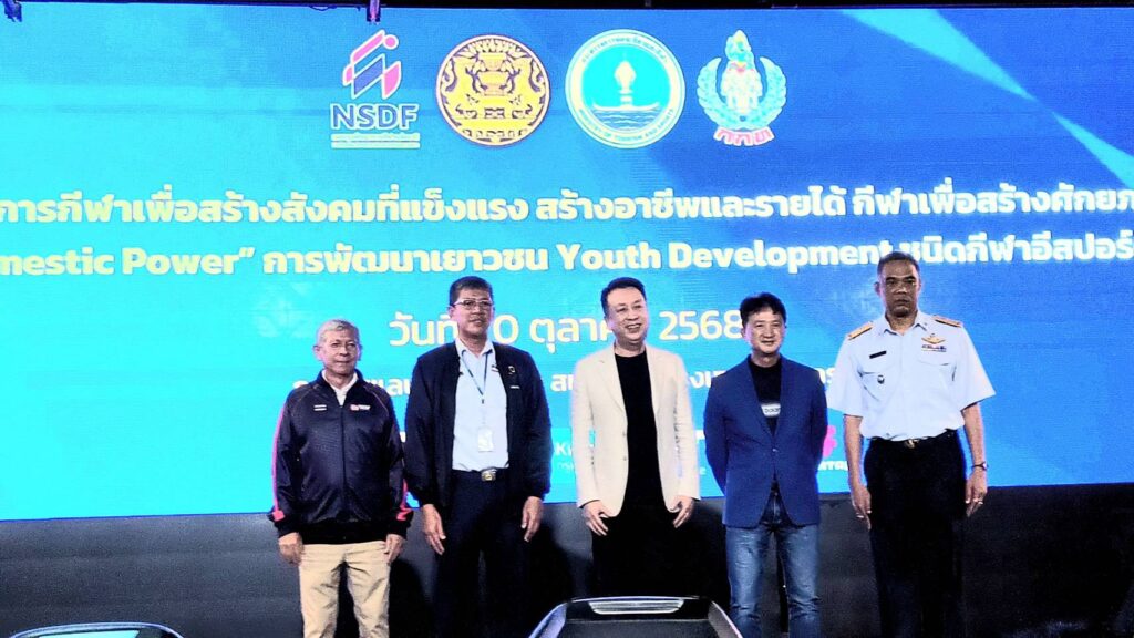 วันที่ 20 ตุลาคม 2568 : สมาคมกีฬาอีสปอร์ตแห่งประเทศไทย โดยนาย สันติ โหลทอง นายกสมาคมฯ จัดงานแถลงข่าวเปิดตัว “โครงการกีฬาเพื่อสร้างสังคมที่แข็งแรง สร้างอาชีพและรายได้ กีฬาเพื่อสร้างศักยภาพของประเทศ “Domestic Power” การพัฒนาเยาวชน Youth Development ประจำปี 2568” ชนิดกีฬาอีสปอร์ต ขึ้นที่ Thailand Esports Staium เมื่อวันที่ 20 ตุลาคม 2568