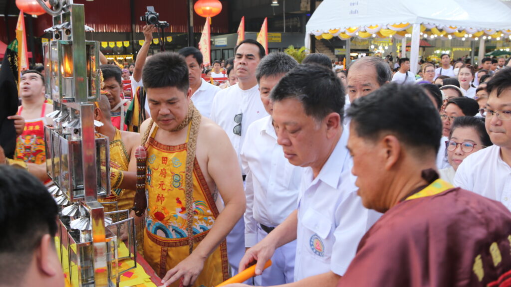 นายเธียรชัย ชูกิตติวิบูลย์ ผู้ว่าราชการจังหวัดชุมพร กระผม รู้สึกยินดีและเป็นเกียรติอย่างยิ่งที่ได้มีโอกาสมาเป็นประธานในพิธีเปิดงานเทศกาลถือศีล – กินเจ ประจำปี พ.ศ. 2568 ครั้งนี้