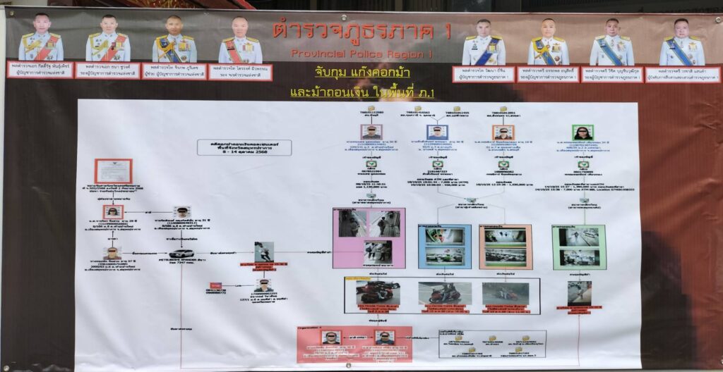 20 ต.ค.68 เวลาประมาณ 15.30 น. เจ้าหน้าที่ตำรวจสืบสวนทราบว่า กลุ่มคนร้ายที่คุมคอกบัญชีม้าได้ออกมาเตรียมตัวเพื่อจะให้บัญชีม้าออกมาถอนเงินสด จึงได้สะกดรอยติดตามไปจนถึงห้างสรรพสินค้าแห่งหนึ่ง สาขาพระประแดง