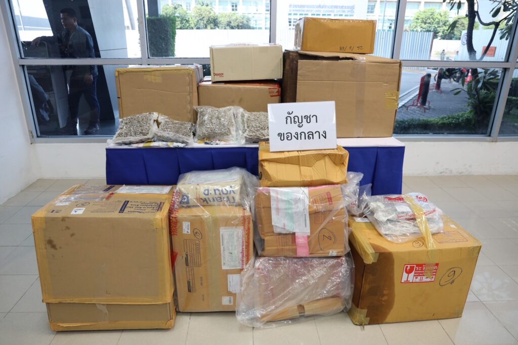 วันที่ 21 ตุลาคม 2568 เวลา15.30 น.ที่สนามบินสุวรรณภูมิ กรมการแพทย์แผนไทยและการแพทย์ทางเลือก ร่วมมือ บริษัท ไปรษณีย์ไทย จำกัด ตรวจยึด พัสดุต้องสงสัย คาดว่าจะเป็นกัญชาลักลอบส่งออก กว่า 1,500 ชิ้น ผ่านระบบขนส่งพัสดุหลังพบพัสดุต้องสงสัยตกค้างจำนวนมาก ที่ศูนย์ไปรษณีย์ไทย ท่าอากาศยานสุวรรณภูมิ นางสาวจิตศ์ตราฎ์ หมีทองธนกรณ์ เลขานุการรัฐมนตรีว่าการกระทรวงสาธารณสุข และประธานคณะกรรมการปราบปรามการกระทำความผิดด้านกฎหมายของกระทรวงสาธารณสุข, นายแพทย์วิทิต สฤษฎีชัยกุล รองเลขาธิการคณะกรรมการอาหารและยา,นายวิน ธนพชรโภคิน ประธานคณะทำงานรัฐมนตรีว่าการกระทรวงสาธารณสุข เปิดเผยว่ากระทรวงฯ ได้ตั้งคณะกรรมการร่วมกับไปรษณีย์ไทยและหน่วยงานที่เกี่ยวข้อง เพื่อป้องกันและปราบปรามการลักลอบ ส่งออกกัญชาไปต่างประเทศ พร้อมวางแนวทางตรวจสอบพัสดุบันทึกหลักฐานและดำเนินคดีตามกฎหมาย