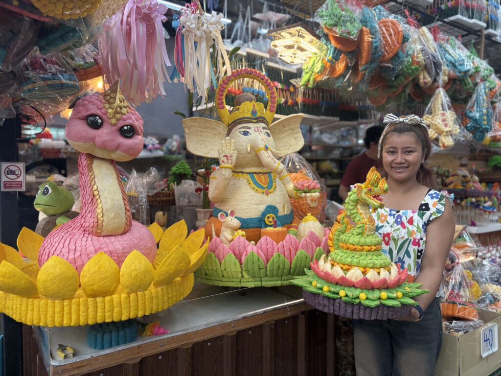 นอกจากนี้ ตลาดยังเป็นสวรรค์ของสาย DIY ที่ต้องการสร้างสรรค์กระทงด้วยตนเอง โดยร้านค้าต่างๆ ได้พร้อมใจกันนำวัสดุธรรมชาติและวัสดุย่อยสลายง่ายมาจำหน่ายในราคาย่อมเยา เช่น หยวกกล้วย กาบกล้วย ใบตอง ใบไม้อบแห้ง โคนไอศกรีม ดอกไม้ ธูป และเทียน โดยมีกระทงสำเร็จรูปจากวัสดุรักษ์โลกเริ่มต้นเพียง 20 บาทเท่านั้น