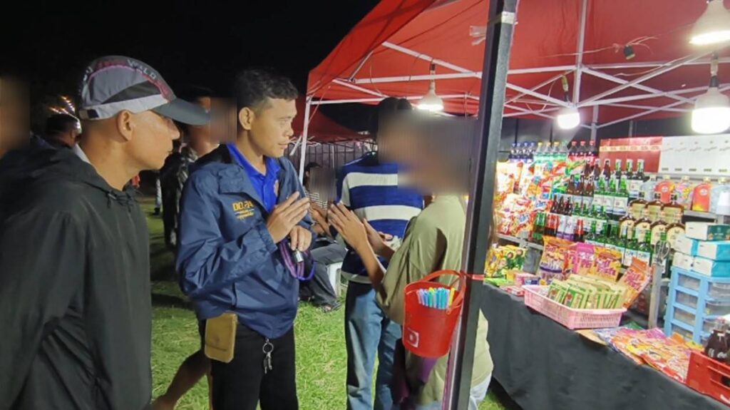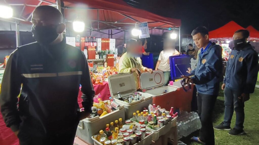 โดยผู้ประกอบการรายหนึ่งอ้างว่า ได้เช่าช่วงต่อจากผู้รับเหมาประมูลงานร้านค้า ที่มีราคาประมูลมาใน 40,000-60,000 บาทต่องาน/ต่อคืน แล้วแต่สถานที่จัดงาน จากนั้นได้นำมาปล่อยให้พ่อค้าแม่ค้าเข้ามาเช่าพื้นที่ขายต่อ โดยอ้างว่าเส้นใหญ่ รู้จักกับเจ้าหน้าที่ทุกฝ่าย เจ้าหน้าที่จึงแสดงตัวเข้าจับกุม ได้ผู้ต้องหา 2 ราย โดยแจ้งข้อกล่าวหา จำหน่ายเครื่องดื่มแอลกอฮอล์โดยไม่ได้รับอนุญาต และจำหน่ายเครื่องดื่มแอลกอฮอล์เกินกว่าเวลาที่กฏหมายกำหนด จากนั้นได้นำตัวผู้ต้องหาพร้อมของกลางส่งดำเนินคดีตามกฎหมายต่อไป.