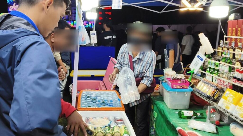 เมื่อไปถึงภายในงาน มีการล้อมผ้าเก็บบัตร โดยใช้สังกะสีล้อมรั้วโดยรอบบริเวณงานคอนเสิร์ต เมื่อเดินเข้าไปด้านในพบร้านค้า จำนวน 4 ร้าน ตั้งแผงเปิดขาย บุหรี่ เหล้า เบียร์ น้ำท่อม โชว์หราเรียงราย ไม่แคร์สายตาเจ้าหน้าที่และประชาชน นอกจากนี้ยังมีการตั้งโต๊ะ บริการเก้าอี้ ให้นั่งซื้อขาย ดื่มกินกันได้ตลอดทั้งคืน พร้อมเต้นรำอย่างสนุกสนาน คล้ายสถานบริการบันเทิงกลางแจ้ง หรือผับบาร์เคลื่อนที่ โดยไม่มีใบอนุญาต