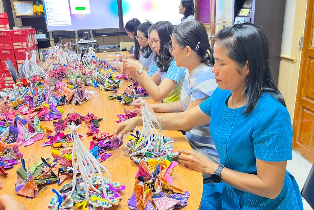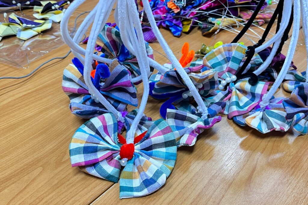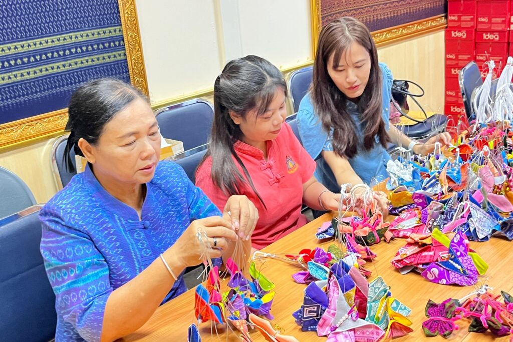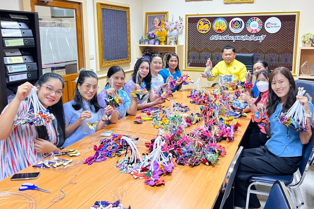 วันที่ 24 ตุลาคม 2568 เวลา 09.30 น. ณ ห้องประชุมสำนักงานพัฒนาชุมชนจังหวัดลพบุรี นายปรัชญา เปปะตัง รองผู้ว่าราชการจังหวัดลพบุรี พร้อมด้วยเจ้าหน้าที่สำนักงานพัฒนาชุมชนจังหวัดลพบุรี ร่วมทำกิจกรรม ประดิษฐ์ผีเสื้อจากผ้าไทยประจำถิ่นของจังหวัดลพบุรี เพื่อสนับสนุนการออกร้านงานกาชาดของสมาคมแม่บ้านมหาดไทย ประจำปี 2568