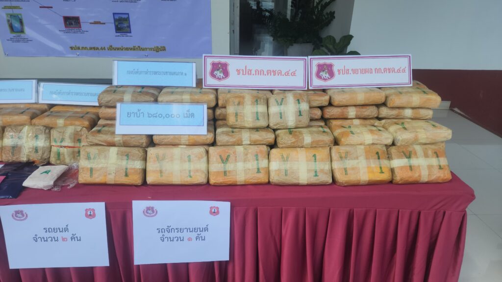เมื่อเวลา 14.00 น. วันที่ 24 ตุลาคม 2568 ที่ กองบังคับการตำรวจตระเวนชายแดนภาค 1 ต.คลองห้า อ.คลองหลวง จ.ปทุมธานี พล.ต.ต.ปภปภพ บดีพิทักษ์ รอง ผบช.ตชด. (ปป.) พร้อมด้วยเจ้าหน้าที่ชุดจุบกุม ได้แถลงผลการจับกุม 3 ผู้ต้องหา พร้อมของกลาง ยาบ้า 680,000 เม็ด และ ยาไอซ์ 30 กิโลกรัม รถจักรยานยนต์ จำนวน 1 คัน รถยนต์ 2 คัน