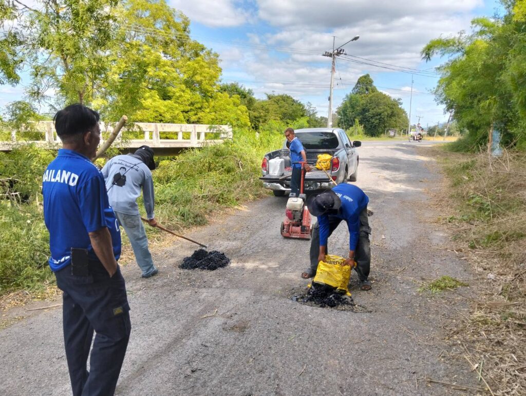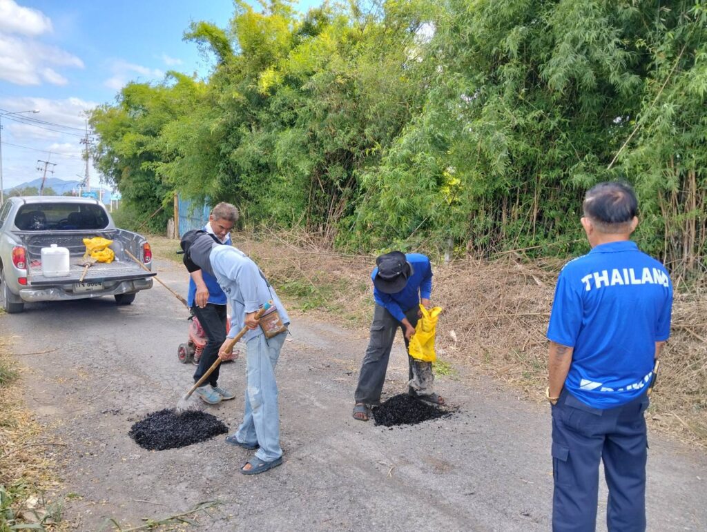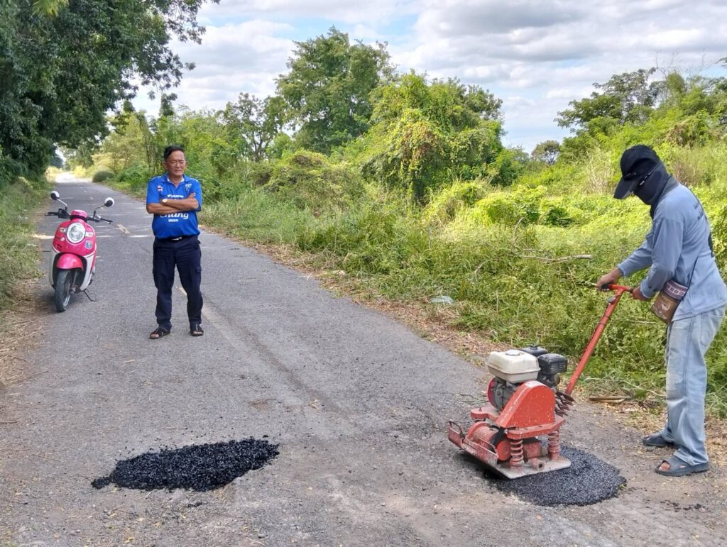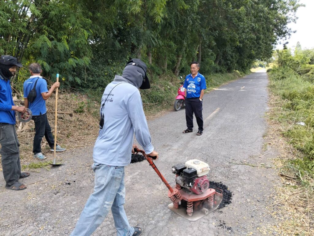 ลุยซ่อมถนนที่เป็นหลุมเป็นบ่อเพื่อให้ประชาชนเดินทางสะดวกสบาย