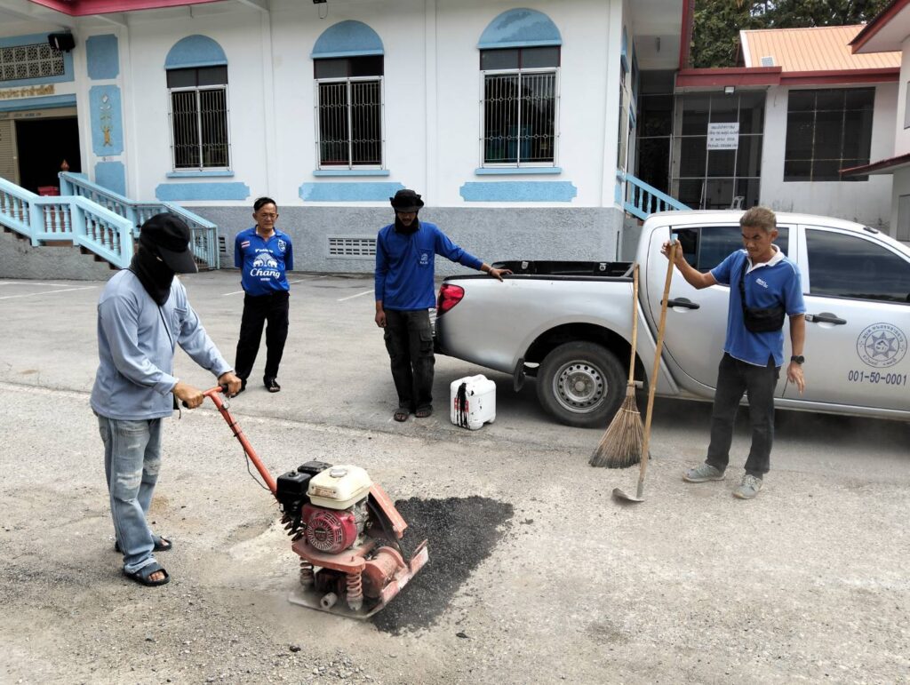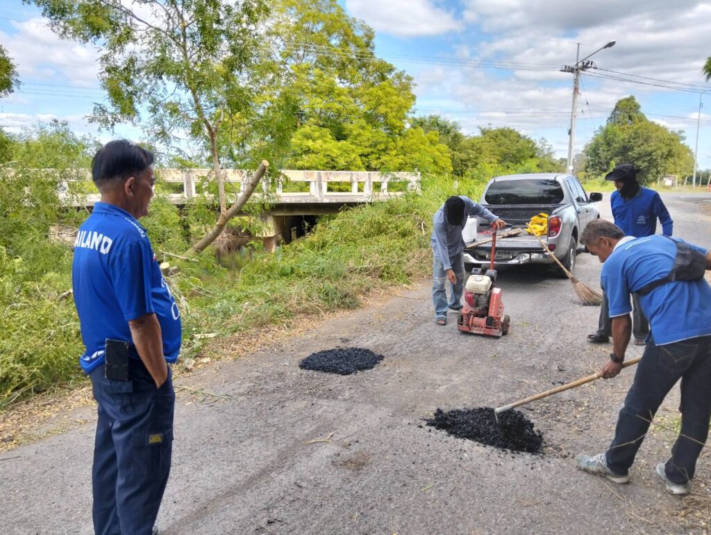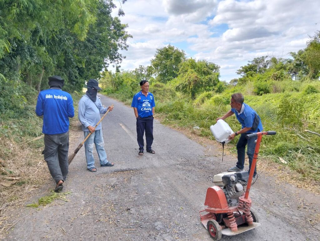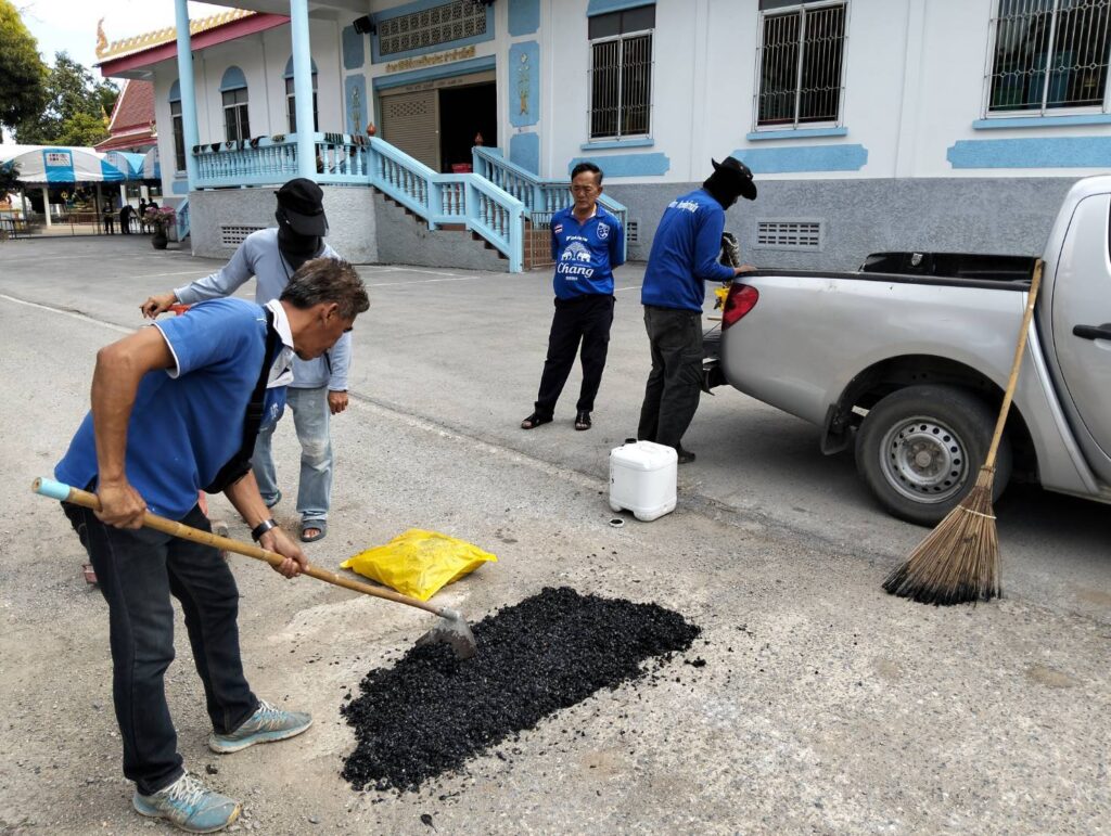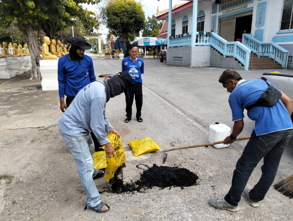 ลุยซ่อมถนนที่เป็นหลุมเป็นบ่อเพื่อให้ประชาชนเดินทางสะดวกสบาย