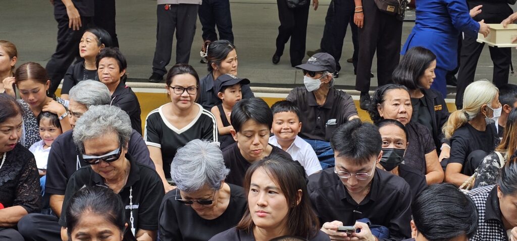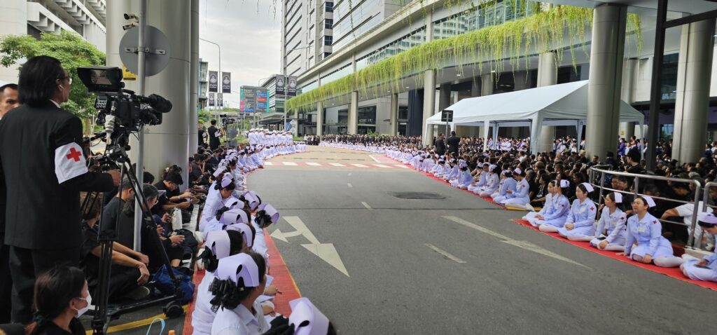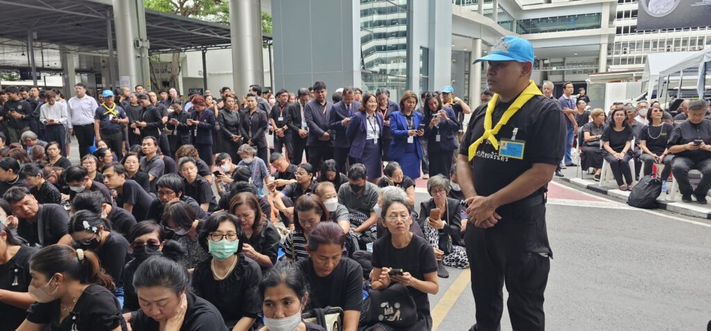 วันที่ 26 ตุลาคม พุทธศักราช 2568 ข้าราชการ พนักงานราชการ และลูกจ้าง พร้อมด้วยภาคีเครือข่ายมวลชนของกองอำนวยการรักษาความมั่นคงภายในราชอาณาจักรประเภทต่างๆ ประกอบด้วย ชมรมพัฒนาสัมพันธ์เครือข่ายความมั่นคงระดับผู้บริหาร (พคบ.), มูลนิธิไทยอาสาป้องกันชาติ, ชมรมธุรกิจไทย-อินเดีย, มวลชนไทยอาสาป้องกันชาติ, ชมรมการกำลังสำรองแห่งประเทศไทย ศูนย์ประสานงานเครือข่ายมวลชนเพื่อความมั่นคงจังหวัด และสภานักวิชาการประจำคณะกรรมการสมัชชามวลชนเพื่อความมั่นคงภายใน กอ.รมน. รวมทั้งสิ้นจำนวน 150 คน เฝ้าส่งเสด็จและถวายความอาลัย พระบรมศพ สมเด็จพระนางเจ้าสิริกิติ์ พระบรมราชินีนาถ พระบรมราชชนนีพันปีหลวง ณ บริเวณด้านหน้า กองบัญชาการ กองทัพภาคที่ 1 บรรยากาศเต็มไปด้วยความเศร้าโศก ประชาชนต่างน้อมสำนึกในพระมหากรุณาธิคุณอันล้นพ้น ที่ทรงบำเพ็ญพระราชกรณียกิจต่างๆ อันเป็นประโยชน์ต่อประเทศชาติและประชาชนชาวไทยมาเป็นระยะเวลายาวนาน