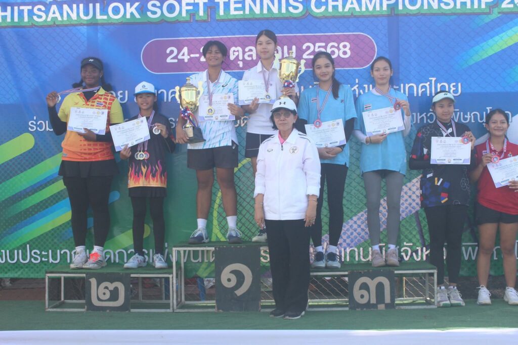 จากนั้นเป็นพิธีมอบเหรียญรางวัลชนะเลิศประเภทต่างๆ โดยได้รับเกียรติจากนายศิริชิน หาญพิทักษ์พงศ์ นายกเทศบาลนครพิษณุโลก,นายวิทยา อ่อนแก้ว รองนายกเทศบาลนครพิษณุโลก,นางอุดมลักษณ์ ศิริกุลเลิศรัฐ นายกสมาคมกีฬาซอฟท์เทนนิสแห่งประเทศไทย,นางสุภาพร นาคนาคา กรรมการบริหารสมาคมฯ และพันตำรวจเอกวรเชษฐ์ พลขันธ์ ที่ปรึกษาชมรมซอฟท์เทนนิสพิษณุโลก ให้เกียรติขึ้นมอบเหรียญรางวัล,ถ้วยรางวัล และประกาศนียบัตรแก่น้องๆนักกีฬาที่ได้รับรางวัลก่อนที่นางอุดมลักษณ์ ศิริกุลเลิศรัฐ นายกสมาคมกีฬาซอฟท์เทนนิสแห่งประเทศไทย จะกล่าวขอบคุณนักกีฬา ผู้ปกครอง,ผู้ตัดสิน และฝ่ายจัดการแข่งขันตลอดจนทุกภาคส่วนของเจ้าภาพจังหวัดพิษณุโลกที่ช่วยกันทำงานรายการนี้จนบรรลุวัตถุประสงค์ พร้อมกล่าวเชิญชวนนักกีฬาให้เข้าร่วมการแข่งขันซอฟท์เทนนิสกีฬาระหว่างโรงเรียน กรมพละศึกษา ในระหว่างวันที่ 29-30 พ.ย.2568 และอีกหนึ่งรายการใหญ่ในรายการระดับนานาชาติ ระหว่างวันที่ 16-21 ธ.ค.2568 ทั้งสองรายการแข่งขันที่สนามเทนนิสมหาวิทยาลัยเทคโนโลยีราชมงคลธัญบุรี คลองหก จ.ปทุมธานี นายกสมาคมฯ กล่าวทิ้งท้าย