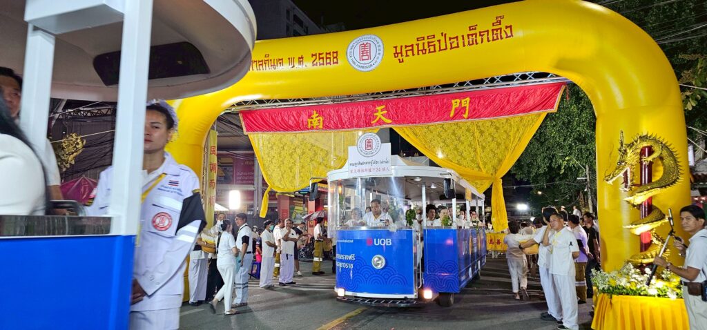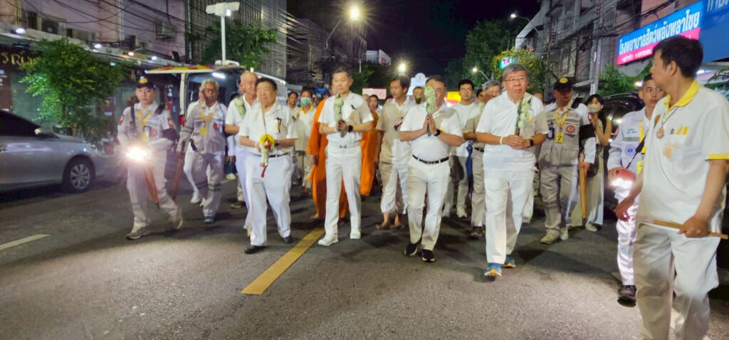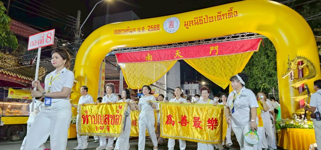 วันจันทร์ที่ 27 ตุลาคม พ.ศ.2568 เวลา 18.00 น. มูลนิธิป่อเต็กตึ๊ง นำโดย นายสัก กอแสงเรือง รองประธานกรรมการฯ เป็นประธานในพิธี พร้อมด้วย นายวิชิต ชินวงศ์วรกุล รองประธานกรรมการฯ,นายสุรพงษ์ เตชะหรูวิจิตร กรรมการและรองเลขาธิการฯ,คณะกรรมการ,ผู้ช่วยกรรมการฯ และผู้บริหารมูลนิธิฯ ร่วมในพิธี “เวียนธูปศักดิ์สิทธิ์” เนื่องในเทศกาลกินเจ ประจำปี 2568 ตั้งจิตอธิษฐาน ขอพรจากเทพเจ้า เพื่อความเป็นสิริมงคล โดยเชื่อว่าเมื่อรับพรจากเทพเจ้าแล้ว จะทำให้จิตใจเบิกบาน ผ่องแผ้ว มีแต่ความสุขความเจริญรุ่งเรือง โดยมี เจ้าหน้าที่ และ อาสาสมัครมูลนิธิป่อเต็กตึ๊ง รวมทั้งศิษยานุศิษย์ และสาธุชน ร่วมพิธีกันอย่างเนืองแน่น ณ ศาลเจ้าไต้ฮงกง มูลนิธิป่อเต็กตึ๊ง พลับพลาไชย
