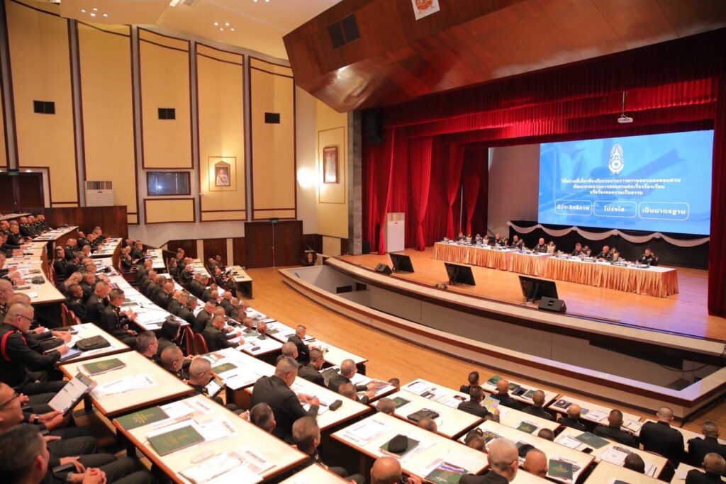 โอกาสนี้ ผู้บัญชาการทหารบกได้กล่าวต่อที่ประชุมว่า “ขอขอบคุณผู้บังคับหน่วยทุกนาย ซึ่งถือเป็นบุคคลหลักในการขับเคลื่อนงานของกองทัพบก ที่ได้กำกับดูแลกำลังพลและภารกิจของหน่วยให้สำเร็จลุล่วงด้วยดีในห้วงที่ผ่านมา ขอให้ทบทวนนโยบายที่ได้รับ และสานต่อภารกิจต่างๆ ด้วยความต่อเนื่อง ซึ่งปัจจุบันยังคงมีสถานการณ์ภัยคุกคามด้านความมั่นคงของประเทศอย่างรอบด้าน ขอให้หน่วยเฝ้าติดตามประเด็นต่างๆ อย่างใกล้ชิด รวมทั้งเตรียมกำลังให้มีความพร้อมอยู่เสมอ ตามแนวทางที่กองทัพบกได้กำหนดไว้อย่างชัดเจน เพื่อรักษาความมั่นคงและอธิปไตยของชาติ