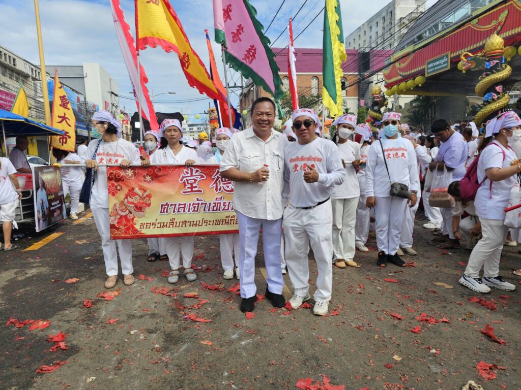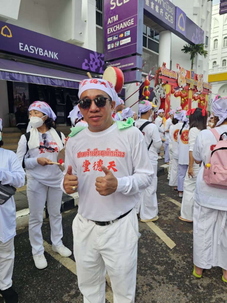 ต๋อง เข้าร่วมกับศาลเจ้าจุ้ยตุ่ย เต้าโบ้เก้ง ศาลเจ้าเก่าแก่ในประเพณีถือศีลกินผักภูเก็ตสุดยิ่งใหญ่ มีม้าทรงร่วมแสดงอภินิหารกว่า 2,000 คน ขณะที่ประชาชนตั้งโต๊ะรับพระ และชมขบวนแห่พระคึกคักตลอดเส้นทาง