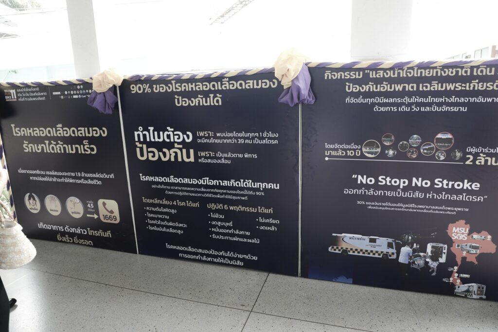 ซึ่งนิทรรศการนี้เป็นโครงการที่กระทรวงสาธารณสุข ร่วมกับคณะแพทยศาสตร์ศิริราชพยาบาล มหาวิทยาลัยมหิดล กระทรวงมหาดไทย กระทรวงการท่องเที่ยวและกีฬา ร่วมกันจัดทำโครงการฯดังกล่าวขึ้นทั่วประเทศ ระหว่างวันที่ ระหว่างวันที่ 27 ต.ค.-2 พ.ย. 2568 เพื่อเฉลิมพระเกียรติพระบาทสมเด็จพระเจ้าอยู่หัว และสมเด็จพระนางเจ้าฯ พระบรมราชินี ที่ทรงเป็นดั่งแสงนำใจของประชาชนไทย และทรงเป็นแบบอย่างแก่ประชาชนชาวไทยในการรักษาสุขภาพและการออกกำลังกาย และส่งเสริมกิจกรรมป้องกันโรคหลอดเลือดสมอง โดยให้ประชาชนทั้งประเทศออกกำลังกายอย่างง่ายๆ เช่น เดิน วิ่ง เพื่อให้มีสุขภาพดีห่างไกลโรค รวมทั้งเพื่อให้ความรู้โรคหลอดเลือดสมอง วิธีการป้องกันและการเข้าถึงการรักษาให้กับประชาชน ทั้งประเทศ เป็นการลดอัตราการพิการและเสียชีวิต