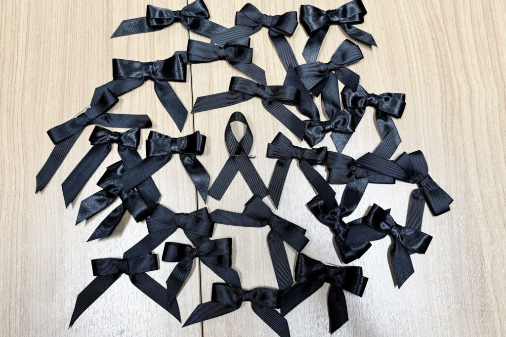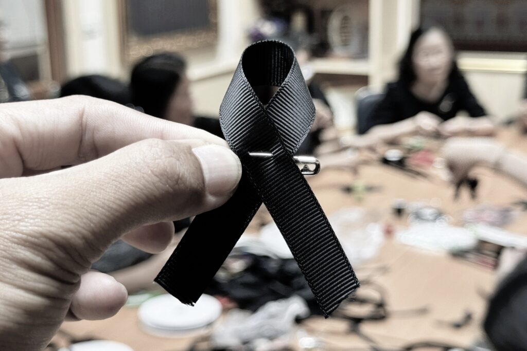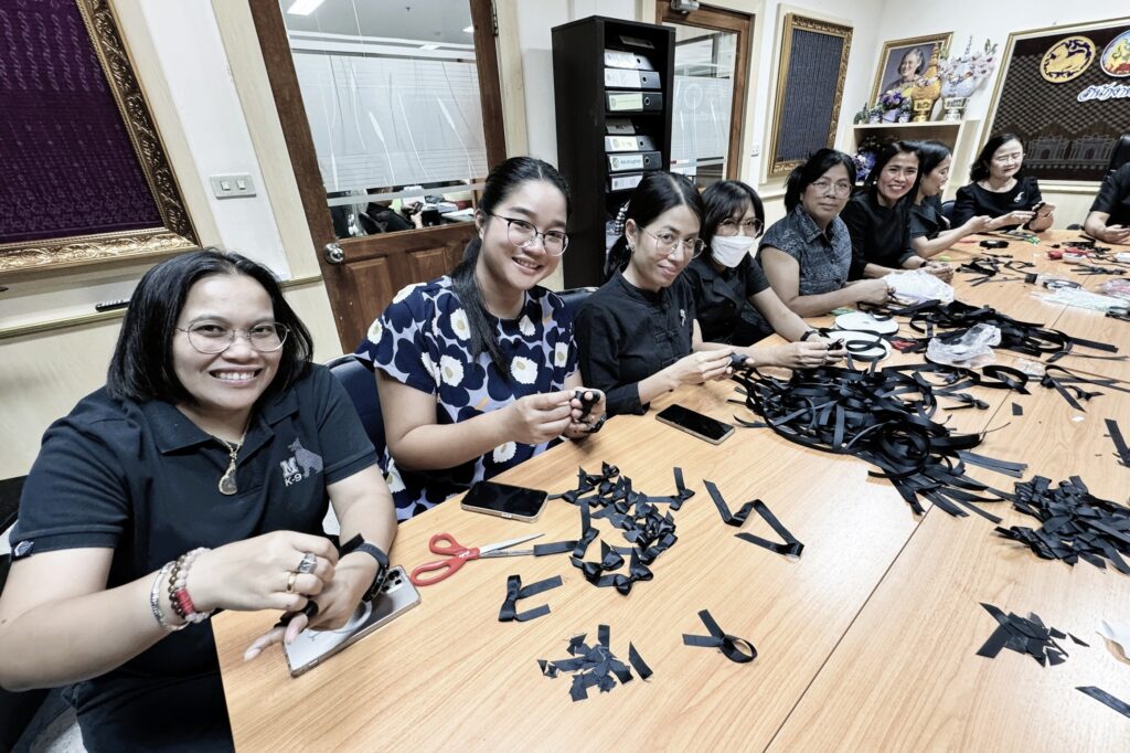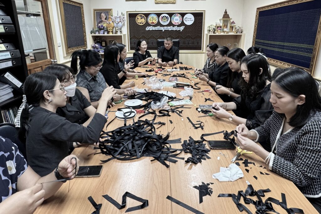 วันที่ 28 ตุลาคม 2568 ณ ห้องประชุมสำนักงานพัฒนาชุมชนจังหวัดลพบุรี นายปรัชญา เปปะตัง ว่าที่ร้อยตรี ทรงพล แป้นแก้ว นายประยูร ศิริวรรณ รองผู้ว่าราชการจังหวัดลพบุรี พร้อมด้วย นางสวามินี อิสระทะ ประชาสัมพันธ์จังหวัดลพบุรี ข้าราชการ เจ้าหน้าที่สำนักงานพัฒนาชุมชนจังหวัดลพบุรี ร่วมกันประดิษฐ์จัดทำริบบิ้นสีดำ เพื่อมอบให้แก่ประชาชนที่เดินทางมาลงนามถวายความอาลัย แด่สมเด็จพระนางเจ้าสิริกิติ์ พระบรมราชินีนาถ พระบรมราชชนนีพันปีหลวง ณ ห้องโถง ชั้น 1 ศาลากลางจังหวัดลพบุรี และที่ว่าการอำเภอทั้ง 11 อำเภอ