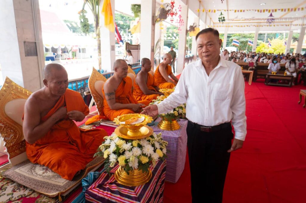 นายกเทศมนตรีเมืองเขาสามยอด ร่วมทำบุญใหญ่ทอดกฐินสามัคคี และนำทอดถวาย ณ วัดดงสวอง (ใหม่) ตำบลเขาสามยอด อำเภอเมืองลพบุรี จังหวัดลพบุรี เพื่อสมทบทุนสร้างฌาปณสถาน (เมรุที่เผาศพ)