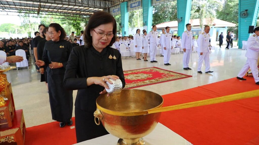 วันที่ 26 ตุลาคม 2568 เวลา 13.00 น. นายสมบัติ ไตรศักดิ์ผู้ว่าราชการจังหวัดสิงห์บุรี เป็นประธานในพิธีสรงน้ำพระบรมศพ สมเด็จพระนางเจ้าสิริกิติ์ พระบรมราชินีนาถ พระบรมราชชนนีพันปีหลวง โดยมีนายวราดิศร อ่อนนุช พร้อมนางสาววีรวรรณ จันทนเสวี รองผู้ราชการจังหวัดสิงห์บุรี นายกเหล่ากาชาดจังหวัดสิงห์บุรี ตุลาการ หัวหน้าส่วนราชการ ข้าราชการ และประชาชนทุกหมู่เหล่า จำนวนกว่า 1,500 คนเข้าร่วมถวายความอาลัยและสำนึกในพระมหากรุณาธิคุณฯ ณ อาคารเอนกประสงค์สนามกีฬาจังหวัดสิงห์บุรี