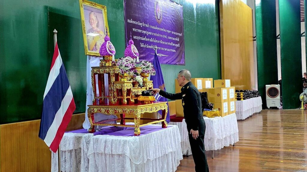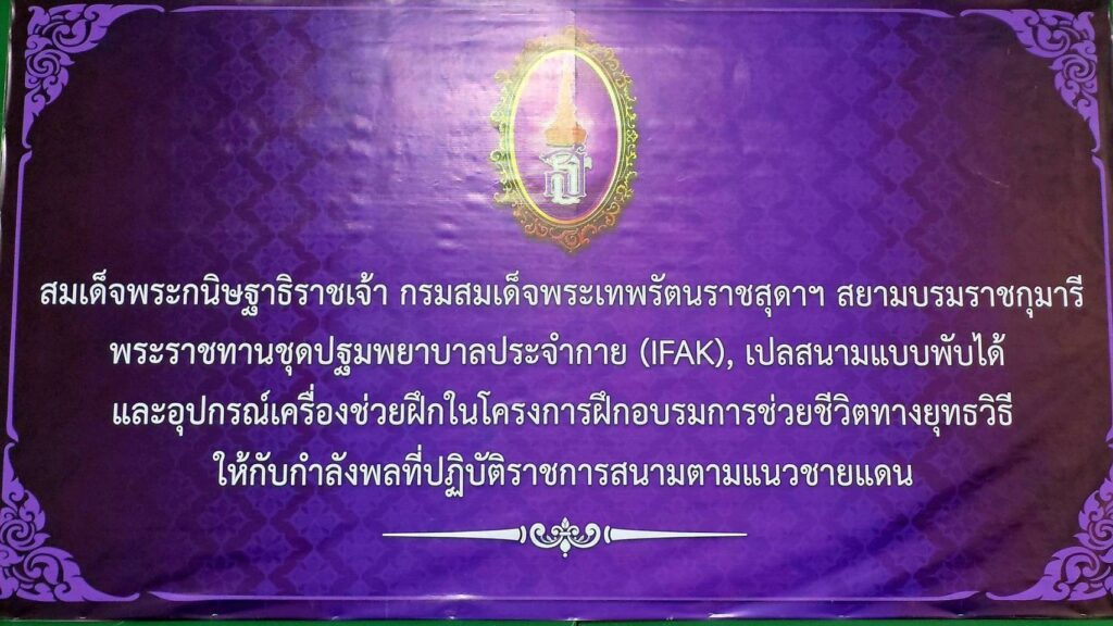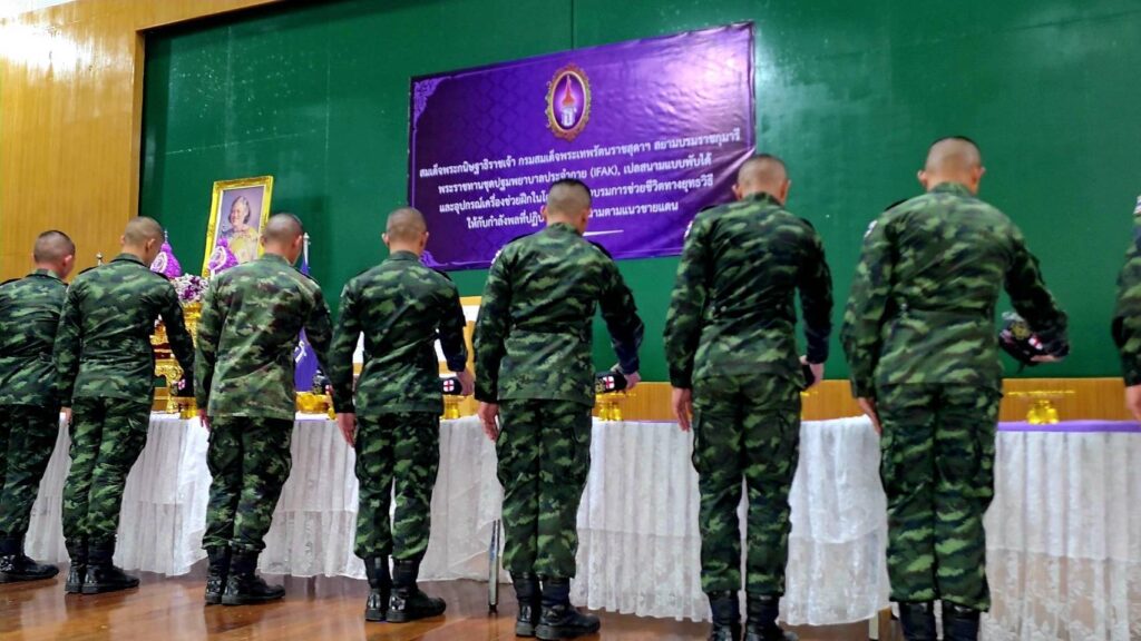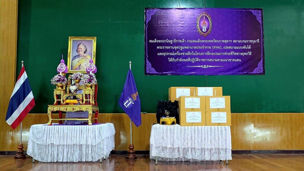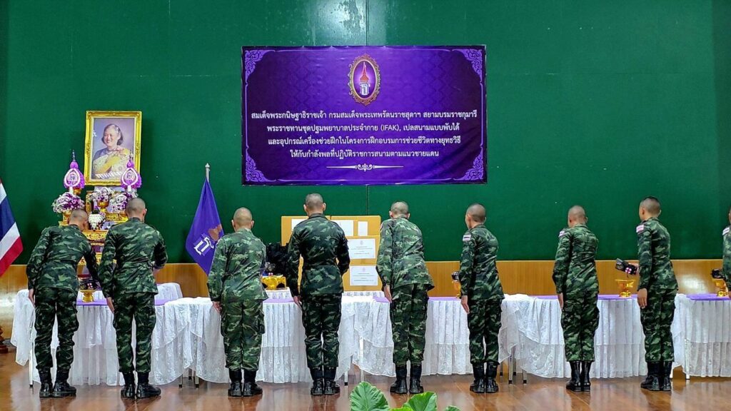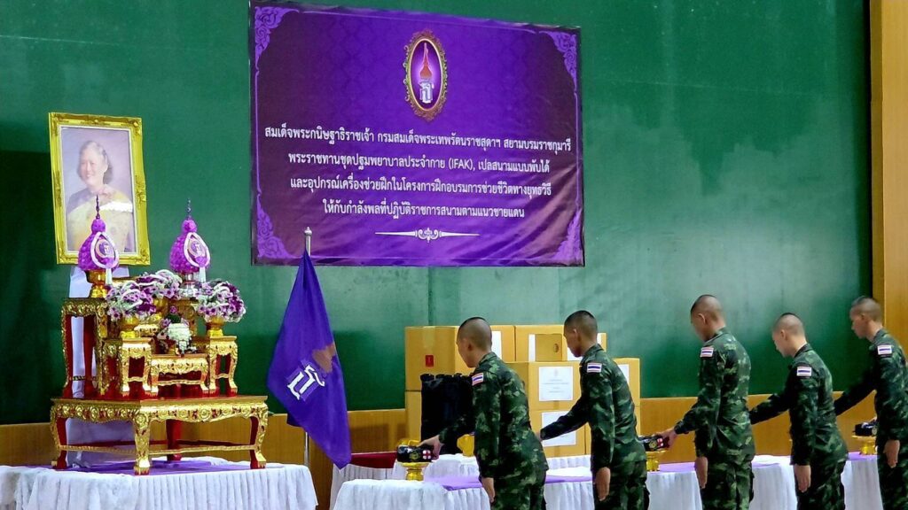 พลโท เกรียงชัย ประสงค์สุกาญจน์ เจ้ากรมแพทย์ทหารบก เดินทางมาเป็นประธานในพิธีรับ และส่งมอบ สิ่งของพระราชทาน ประกอบด้วย อุปกรณ์ปฐมพยาบาลประจำกาย (IFAK) จำนวน 200 ชุด เปลสนามพับได้ จำนวน 10 หลัง สายรัดห้ามเลือด จำนวน 500 เส้น และ Combat Gauze ผ้าก๊อซห้ามเลือดที่ถูกออกแบบมาเพื่อใช้ในสถานการณ์ฉุกเฉินและทางการรบ เพื่อช่วยลดการสูญเสียเลือดจากบาดแผลรุนแรงได้อย่างมีประสิทธิภาพ จำนวน 50 ชิ้น ซึ่งได้รับพระราชทาน จาก สมเด็จพระกนิษฐาธิราชเจ้า กรมสมเด็จพระเทพรัตนราชสุดาฯ สยามบรมราชกุมารี ที่ทรงมีพระเมตตาห่วงใยกำลังพลที่ปฏิบัติราชการสนาม จากสถานการณ์สู้รบตามแนวชายแดนไทย-กัมพูชา จึงมีพระราชดำริ พระราชทานชุดปฐมพยาบาลประจำกาย เปลสนาม และเครื่องช่วยฝึกอื่นๆ ให้กรมแพทย์ทหารบก เพื่อนำไปแจกจ่ายแก่กำลังพลตามแนวชายแดน และ นักเรียนนายสิบเหล่าแพทย์ทหารบก ที่กำลังจะสำเร็จการศึกษา ประจำปี 2568 อีกทั้งใช้เป็นอุปกรณ์เครื่องช่วยฝึกอบรมความรู้ในโครงการฝึกอบรมช่วยชีวิตทางยุทธวิธีให้กับกำลังพลที่ปฏิบัติหน้าที่ราชการสนามตามแนวชายแดน