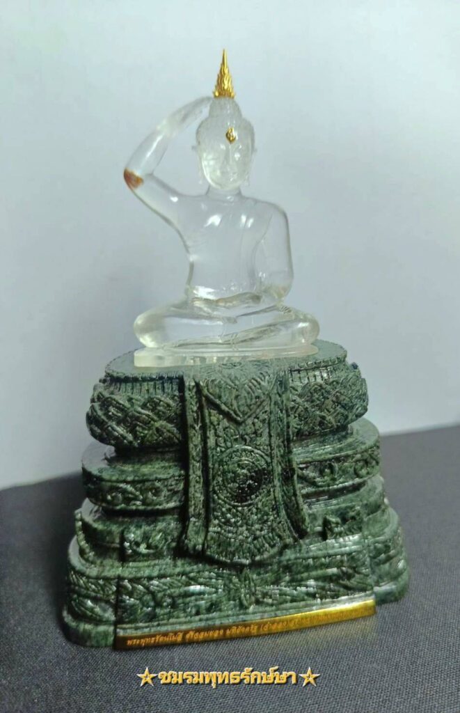 สัญลักษณ์แห่งอำนาจบารมี อธิปไตย และความเจริญรุ่งเรือง ได้อัญเชิญมาให้สาธุชนได้น้อมจิตอธิษฐาน ขอพรความมั่นคง สมบูรณ์ทั้งร่างกายและจิตใจ - พระแก้วคู่บารมี จัดทำโดย ชมรมพุทธรักษ์ษา