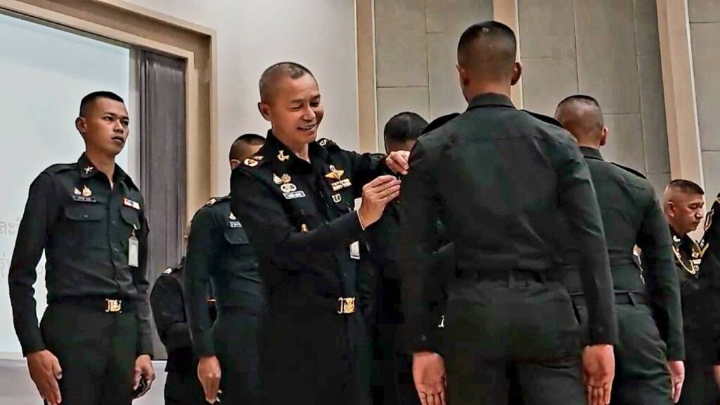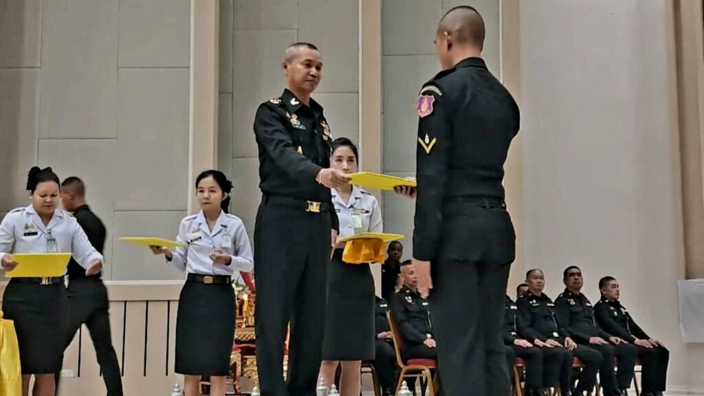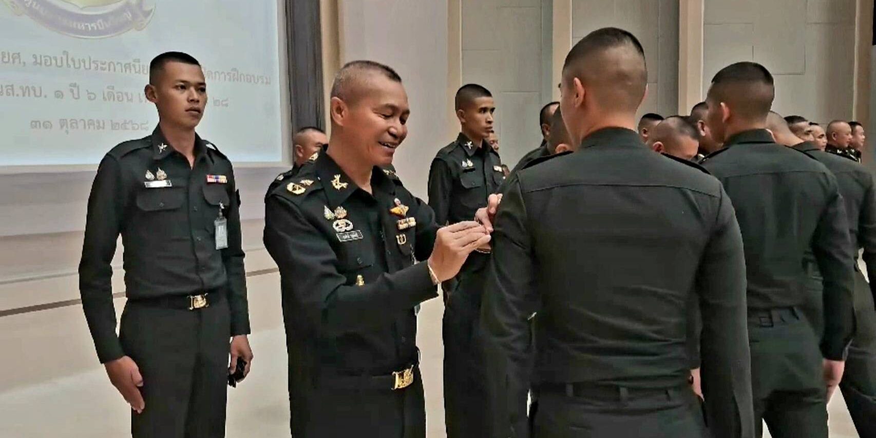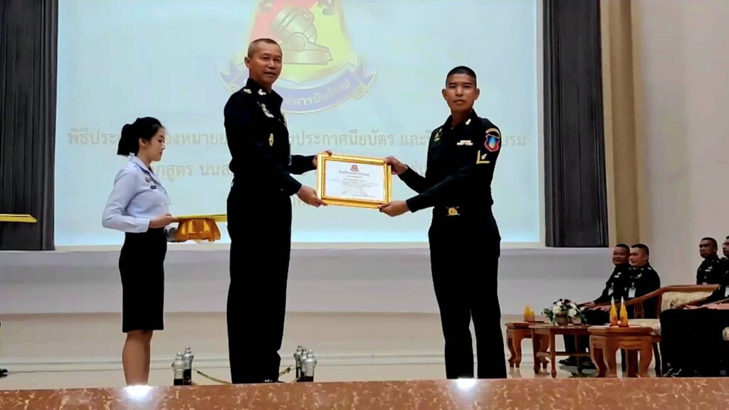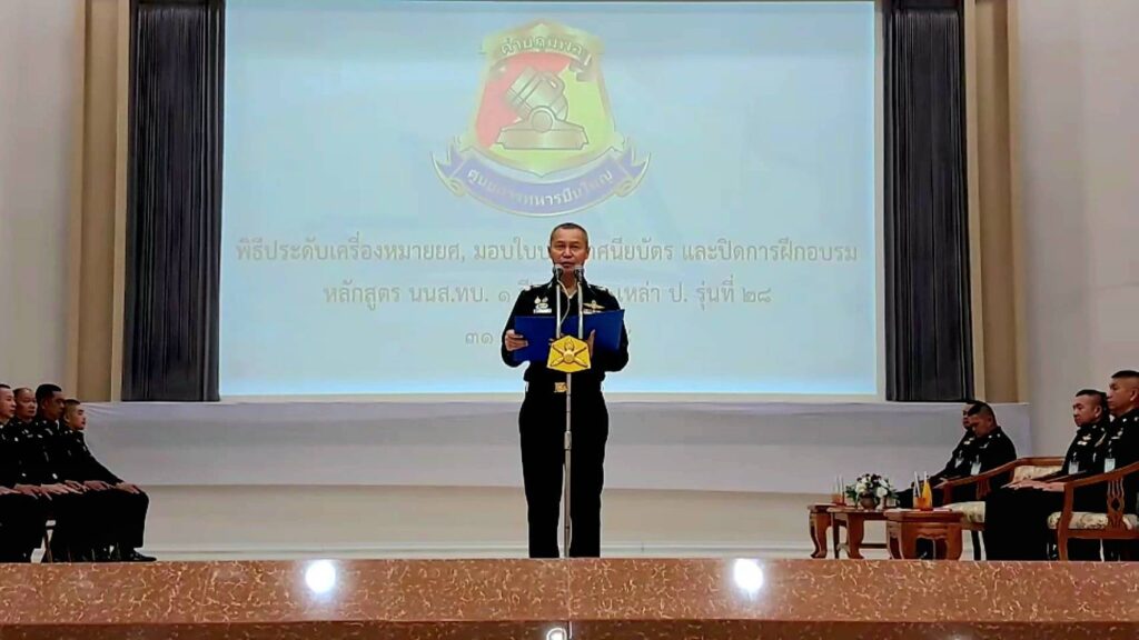 พลตรี สมศักดิ์ นุตพันธุ์ ผู้บัญชาการศูนย์การทหารปืนใหญ่ ค่ายภูมิพลฯ ต.เขาพระงาม อ.เมือง จ. ลพบุรี เป็นประธาน ในพิธี ประดับเครื่องหมายยศสิบตรี และมอบประกาศนียบัตร แก่นักเรียนนายสิบทหารบกหลักสูตร 1 ปี 6 เดือน เหล่าทหารปืนใหญ่ ตามที่โรงเรียนทหารปืนใหญ่ ได้เปิดการฝึกอบรม หลักสูตรนักเรียนนายสิบทหารบก หลักสูตร 1 ปี 6 เดือน เหล่าทหารปืนใหญ่ รุ่นที่ 28 ประจำปีการศึกษา 2567 ใช้เวลาในการฝึกอบรม 26 สัปดาห์ มีผู้เข้ารับการฝึกอบรม จำนวน 248 นาย
