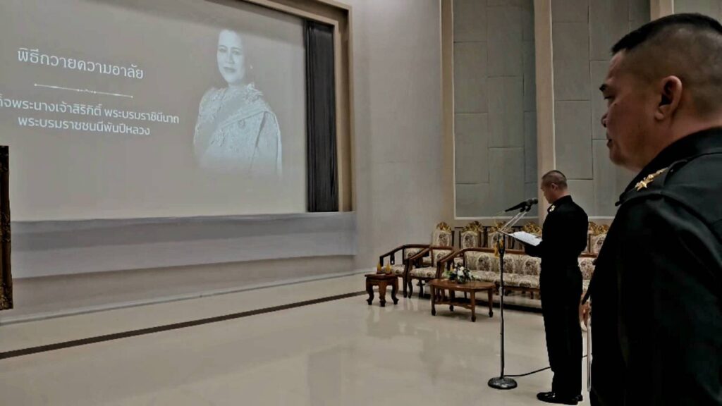 ทั้งนี้ ผู้บัญชาการศูนย์การทหารปืนใหญ่ ได้นำผู้ร่วมพิธี ร่วมถวายความไว้อาลัยแด่สมเด็จพระนางเจ้าสิริกิติ์ พระบรมราชินีนาถ พระบรมราชชนนีพันปีหลวง และยืนไว้อาลัย เป็นเวลา 93 วินาที เพื่อแสดงออกถึงความจงรักภักดี และสำนึกในพระมหากรุณาธิคุณ อย่างหาที่สุดมิได้ พร้อมทั้งได้กล่าวให้โอวาท แก่นักเรียนนายสิบที่สำเร็จการศึกษาทุกนาย โดยเน้นย้ำ ให้ประพฤติปฏิบัติตตน เป็นข้าราชการที่ดีของแผ่นดิน ในฐานะบุคลากร รุ่นใหม่ของกองทัพบก และในฐานะทหารของชาติ มีสุขภาพร่างกายแข็งแรง อดทนต่อการทำงานในหน้าที่ตามภารกิจที่ได้รับมอบหมาย เป็นผู้นำที่ดีมีคุณธรรม ตามรอยเบื้องพระยุคบาท ของ พระบาทสมเด็จพระมหาภูมิพลอดุลยเดชมหาราช บรมนาถบพิตร และ พระบาทสมเด็จพระปรเมนทรรามาธิบดีศรีสินทรมหาวชิราลงกรณ พระวชิรเกล้าเจ้าอยู่หัว อีกด้วย