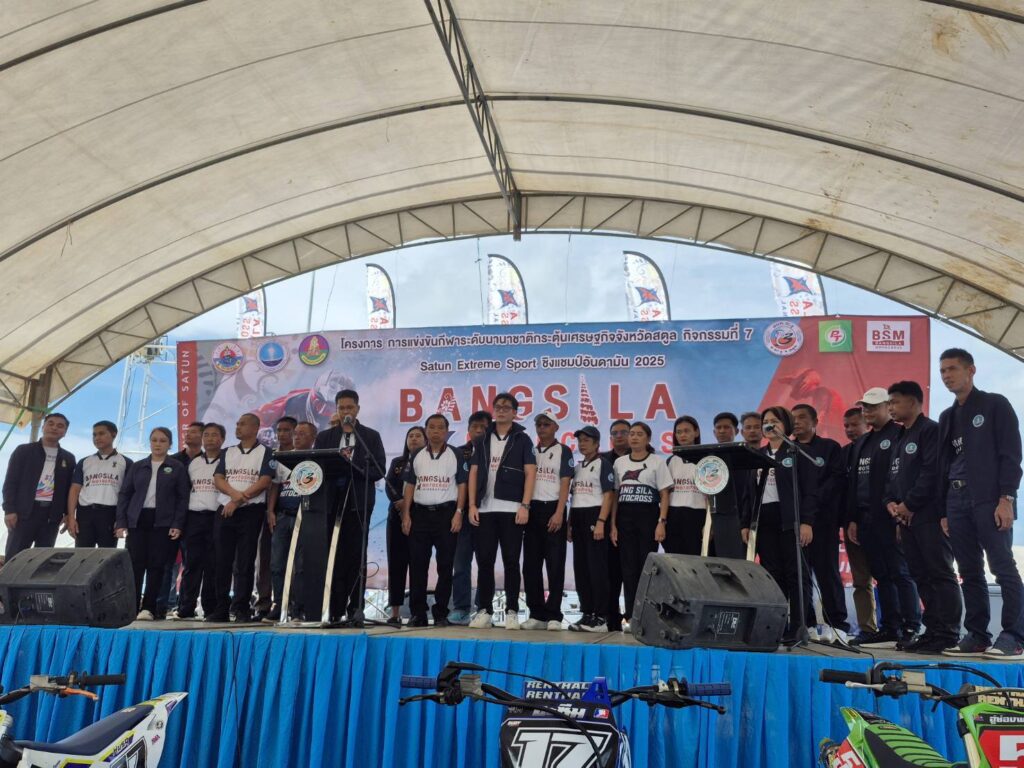 วันนี้ 2 พ.ย. 68 ที่สนามบางศิลา มอเตอร์ครอส ตำบลละงู อำเภอละงู จังหวัดสตูล นายคณิต คงช่วย รองผู้ว่าราชการจังหวัดสตูล เป็นประธานเปิดโครงการการแข่งขันกีฬาระดับนานาชาติ กระตุ้นเศรษฐกิจจังหวัดสตูล กิจกรรม “Satun Extreme Sport ชิงแชมป์อันดามัน 2025 บางศิลา มอเตอร์ครอส อินเตอร์เนชันแนล” พร้อมด้วยหัวหน้าส่วนราชการ ผู้บริหารองค์กรปกครองส่วนท้องถิ่น นักกีฬาไทยและต่างชาติ ตลอดจนประชาชนและนักท่องเที่ยวเข้าร่วมงานเป็นจำนวนมาก