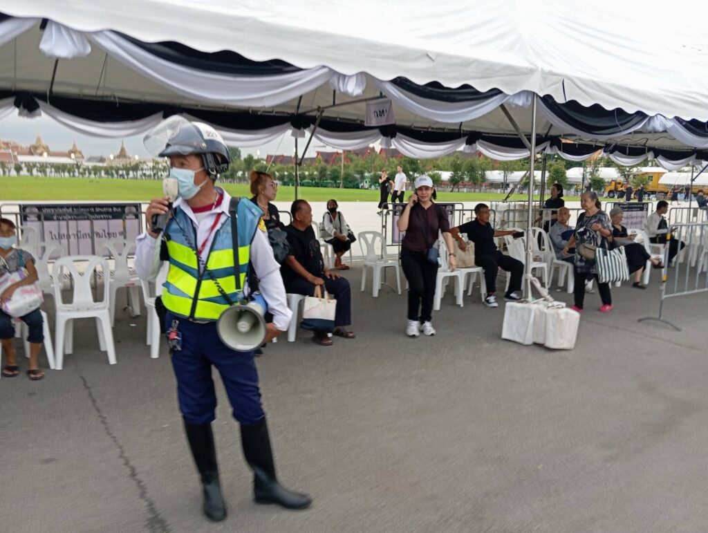 ดูแลอำนวยความสะดวกด้านการจราจรแก่พี่น้องประชาชน ที่เดินทางมาถวายสักการะพระบรมศพ สมเด็จพระบรมราชชนนีนาทพันปีหลวง บริเวณท้องสนามหลวง เขตพระนคร กทม.