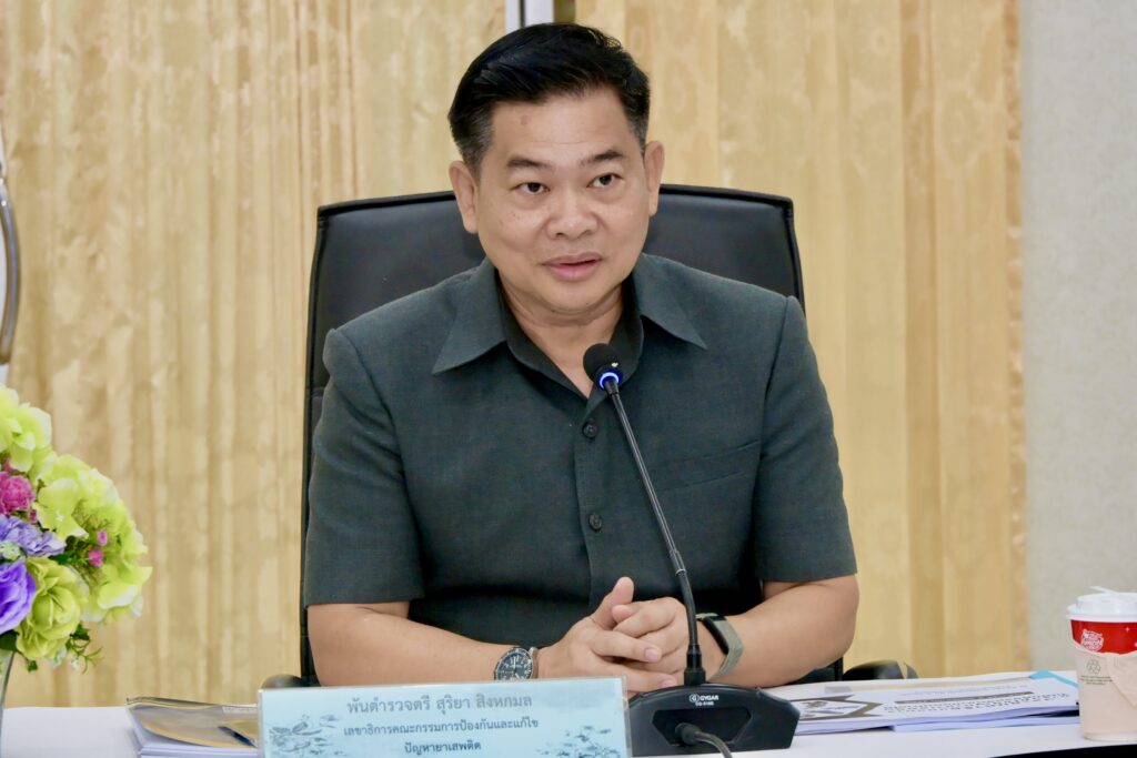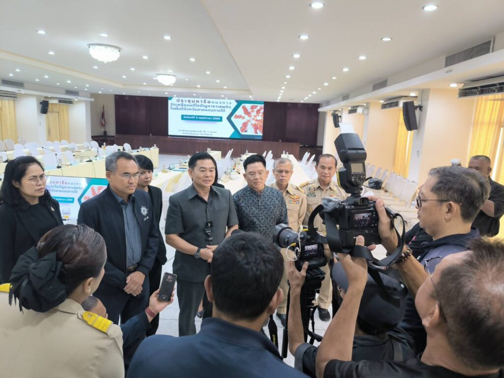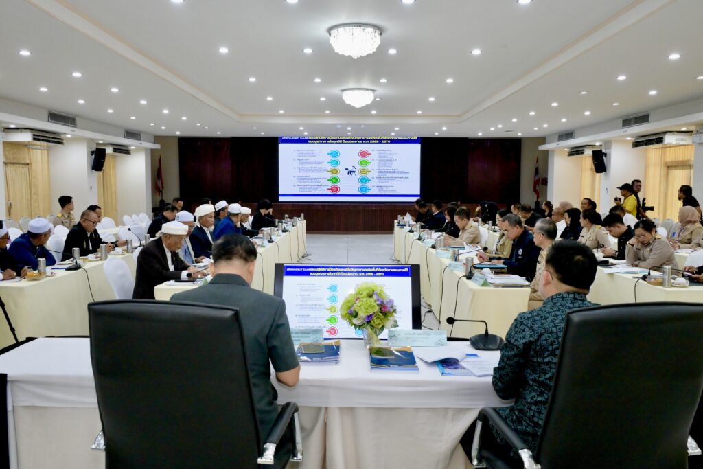 วันที่ 3 พฤศจิกายน 2568 : พ.ต.ต.สุริยา สิงหกมล เลขาธิการ ป.ป.ส. พร้อมด้วยนายปิยะศิริ วัฒนวรางกูร รักษาราชการแทนเลขาธิการศูนย์อำนวยการบริหารจังหวัดชายแดนภาคใต้ (ศอ.บต.) ร่วมเป็นประธานการประชุมหารือแนวทางการแก้ไขปัญหายาเสพติดในพื้นที่จังหวัดชายแดนภาคใต้ โดยมีประธานกรรมการอิสลามประจำจังหวัด ผู้นำศาสนา นายกสมาคมสถาบันปอเนาะ และหน่วยงานที่เกี่ยวข้องเข้าร่วม ณ อาคารศูนย์อำนวยการบริหารจังหวัดชายแดนภาคใต้ อำเภอเมือง จังหวัดยะลา