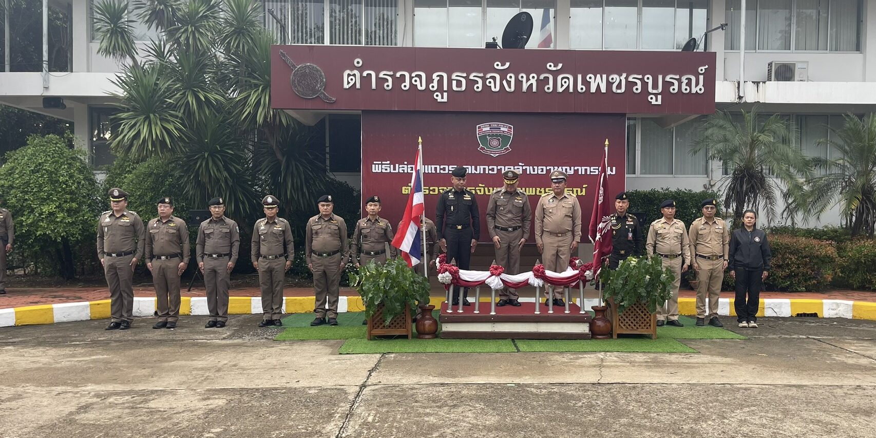วันที่ 3 พฤศจิกายน 2568 ณ ลานหน้าอาคารที่ทำการตำรวจภูธรจังหวัดเพชรบูรณ์ พล.ต.ต.สารนัย คงเมือง ผู้บังคับการตำรวจภูธรจังหวัดเพชรบูรณ์ เป็นประธานในพิธีปล่อยแถวระดมกวาดล้างอาชญากรรมช่วงเทศกาลลอยกระทง ประจำปี 2568 เพื่อสร้างความเชื่อมั่นด้านความปลอดภัยให้กับประชาชน โดยมีเจ้าหน้าที่จากหน่วยงานความมั่นคง ทั้งภาครัฐและภาคประชาชน เข้าร่วมพิธีอย่างพร้อมเพรียง