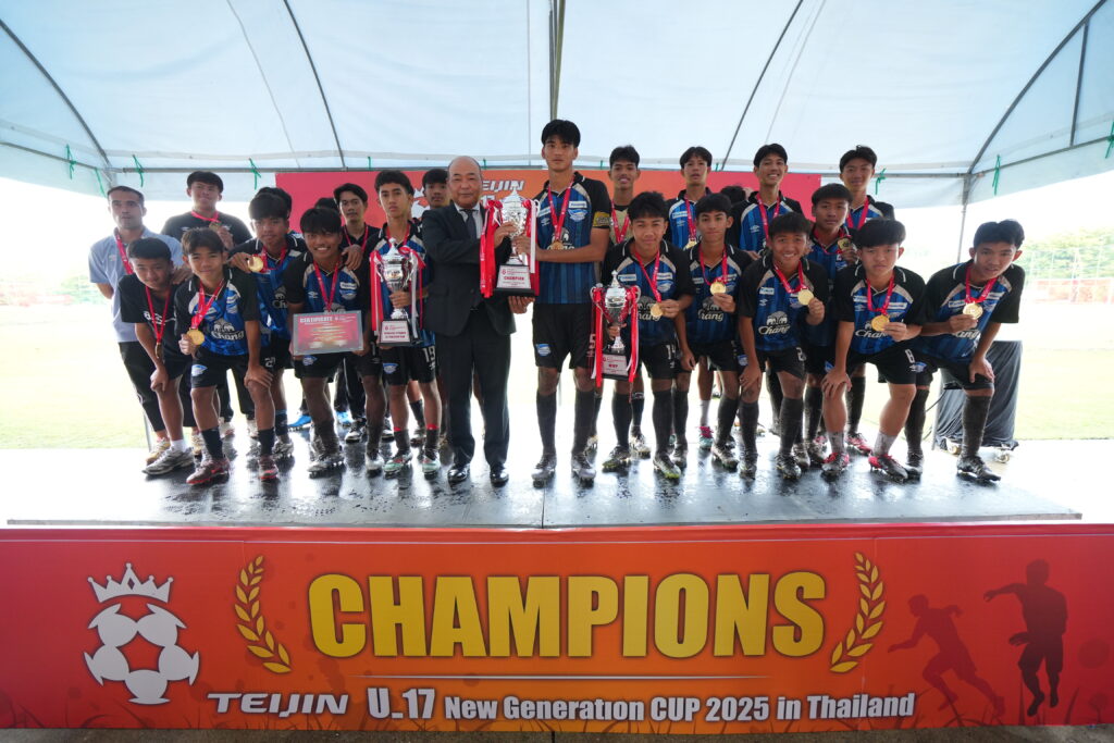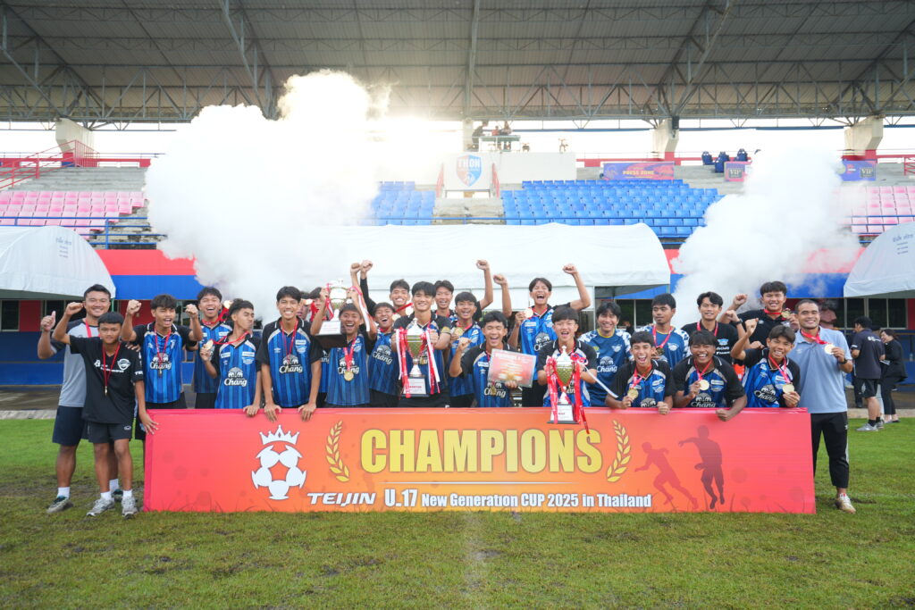 ศึกฟุตบอลเยาวชนนานาชาติ “TEIJIN U-17 New Generation Cup 2025 ประเทศไทย” (เทยิน ยู-17 นิว เจเนอเรชัน คัพ 2025 ประเทศไทย) ปิดฉากลงอย่างเร้าใจ เมื่อทีมท่าข้าม ชลบุรี เอฟซี โชว์ฟอร์มเด่นเฉือนเอาชนะ พีวีเอฟ เวียดนาม ไปอย่างสุดมันส์ด้วยสกอร์ 2 – 1 ในช่วงต่อเวลาพิเศษ คว้าแชมป์ไปครองท่ามกลางเสียงเชียร์กระหึ่ม ณ ธนบุรี สเตเดี้ยม