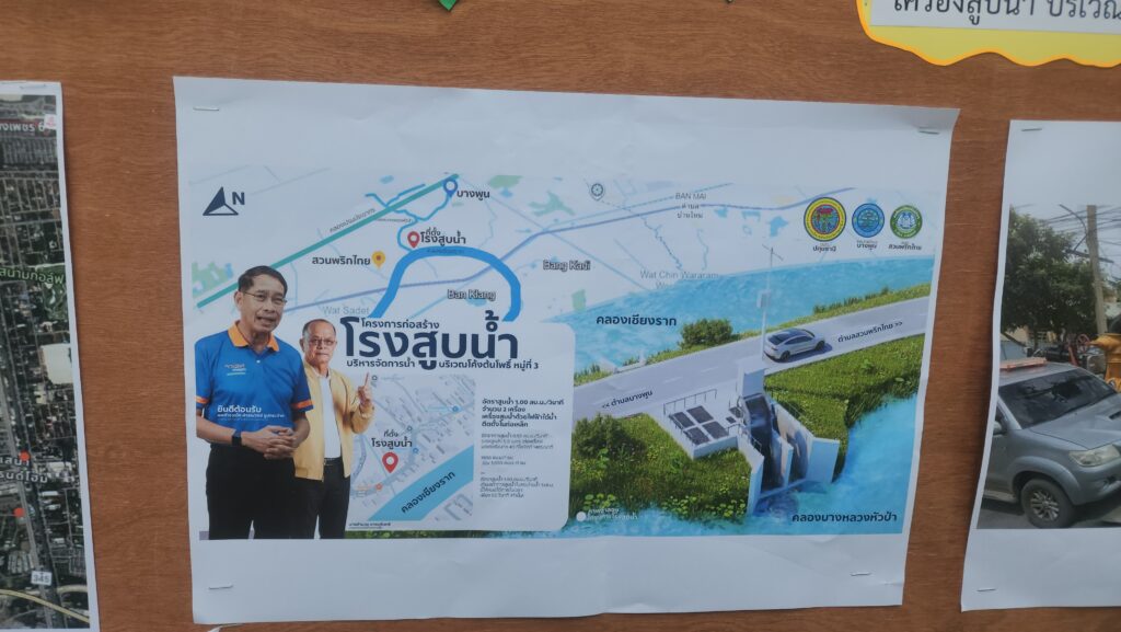 สำหรับโครงการก่อสร้างโรงสูบน้ำ บริเวณโค้งต้นโพธิ์ ม.3 เป็นโครงการ ที่จะสามารถบริหารจัดการน้ำภายในพื้นที่ ทต.บางพูน และ อบต.สวนพริกไทย ปัจจุบันตรุงจุดดังกล่าวมีการร่วมมือกันระหว่าง 2 องค์กรปกครองส่วนท้องถิ่น คือ ทต.บางพูน และ อบต.สวนพริกไทย นำเครืองสูบน้ำขนาดท่อ 14 นิ้ว จำนวน 2 เครืองเร่งสูบน้ำช่วยเหลือชาวบ้านอยู่แต่ก็ยังมีชาวบ้านกว่า 300 หลังคาเรือนได้รับผลกระทบ เนื่องจากไม่สามารถระบายน้ำได้ทันจากปัญหาฝนที่ตกหนักก่อนหน้านี้ เพราะต้องผันน้ำ จาก คลองบางหลวงหัวป่า ลงสู่คลองเชียงราก และเครื่องสูบน้ำที่ติดตั้งอยู่เป็นระบบน้ำมัน ทำให้เกิดเสียงที่ดังขณะทำงาน แต่เครื่องสูบน้ำ โครงการก่อสร้างโรงสูบน้ำ บริเวณโค้งต้นโพธิ์ ม.3 เป็นเครืองสูบน้ำระบบไฟฟ้าใต้น้ำติดตั้งในท่อเหล็ก ทำให้ไร้เสียงรบกวน มีสมรรถนะ สามารถสูบน้ำได้ 1.00 ลบ.ม. ต่อ วินาที ติดตั้งจำนวน 2 เครื่อง โดยจะสามารถสูบน้ำในสระว่ายน้ำขนาด 5×8 เมตรหมดได้ภายใน 50 วินาที หรือ 40,000 ลิตร ต่อ 1 ชั่วโมง ซึ่งถือว่ามีสมรรถนะ มากกว่าการติดตั้งเครื่องสูบน้ำที่กำลังทำหน้าที่อยู่เป็นอย่างมาก ซึ่ง โครงการก่อสร้างโรงสูบน้ำ บริเวณโค้งต้นโพธิ์ ม.3 จะต้องใช้งบประมาณกว่า 16 ล้านบาท