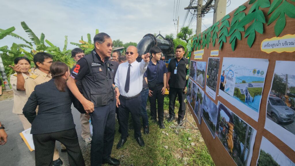 เมื่อเวลา 10.00 น. วันที่ 4 พฤศจิกายน 2568 ที่ โครงการก่อสร้างโรงสูบน้ำ บริเวณโค้งต้นโพธิ์ ม.3 ต.บางพูน อ.เมือง จ.ปทุมธานี พล.ต.ท.คำรณวิทย์ ธูปกระจ่าง นายก อบจ.ปทุมธานี พร้อมด้วย นายอดิสร อยู่นาน สมาชิกสภา อบจ.เขตเลือกตั้งที่ 5 อ.เมืองปทุมธานี ลงพื้นที่ ดูสถานที่ตั้ง โครงการก่อสร้างโรงสูบน้ำ พร้อมรับฟังปัญหา และผลกระทบจากสถานการณ์น้ำท่วม โดยมี นายอำนวย นาคบุรินทร์ นายกเทศมนตรีตำบลบางพูน นายคูณเรียม ปัทสีสร้อย นายกองค์การบริหารส่วนตำบลสวนพริกไทย นายเจษฎา ดนตรีเสนาะ สมาชิกสภาผู้แทนราษฎร เขตที่ 2 ปทุมธานี คณะผู้บริหารทั้ง 2 องค์กร ส่วนราชการจังหวัดปทุมธานี และประชาชนให้การต้อนรับ