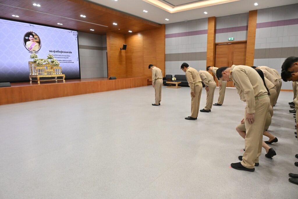 สมเด็จพระนางเจ้าสิริกิติ์ พระบรมราชินีนาถ พระบรมราชชนนีพันปีหลวง ซึ่งมีการกล่าวคำถวายความอาลัย ยืนสงบนิ่ง เพื่อน้อมรำลึกในพระมหากรุณาธิคุณ พร้อมร่วมลงนามแสดงความอาลัยและถวายความเคารพโดยพร้อมเพรียงกัน