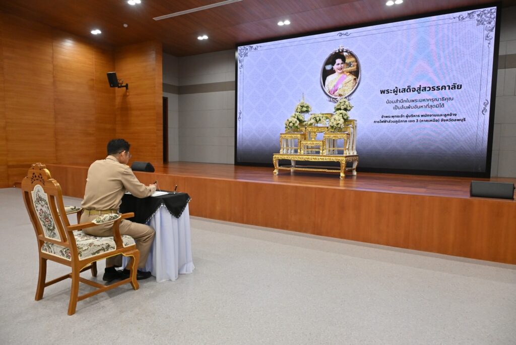 วันที่ 3 พฤศจิกายน 2568 เวลา 09.30 น. นายเมธี บุญพรหม ผู้ช่วยผู้ว่าการการไฟฟ้าส่วนภูมิภาค เขต 3 (ภาคเหนือ) จังหวัดลพบุรี เป็นประธานในพิธี ถวายสักการะ และลงนามถวายความอาลัย แด่