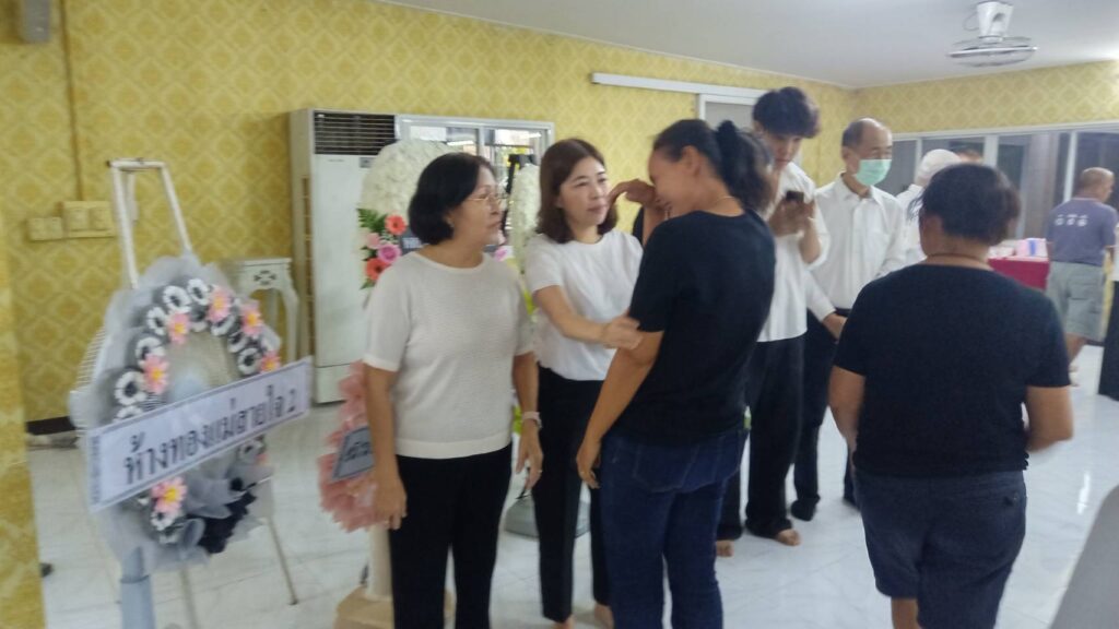 บรรยากาศโศกเศร้า บางเวลาได้มีเสียงสะอื้นบางคนก็ร้องไห้ออกมาเป็นภาพที่โศกเศร้า เพราะเสียใจได้เสียคนดีไม่มีวันกลับ บรรดาเพื่อนๆญาติมิตรพี่น้องนั่งเงียบเช็ดน้ำตากันอย่างทั่วหน้าเป็นภาพที่เศร้า