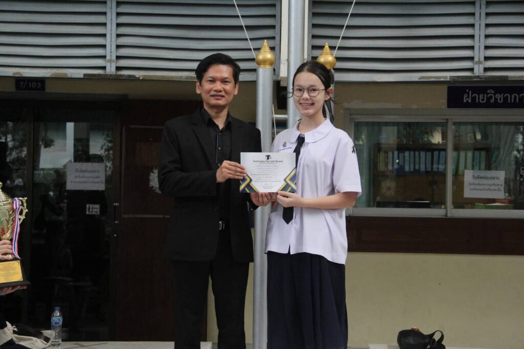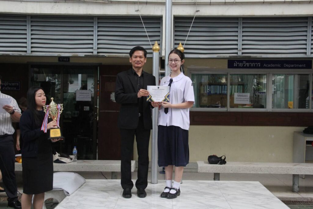 1.น.ส.มายา แครอลไลน์ คาร์เบ็คเคน ได้รับรางวัลอันดับที่ 1 ของประเทศ ระดับชั้น ม.ต้น ได้รับทุนการศึกษา 4,000 บาท ถ้วยรางวัลและใบเกียรติบัตร