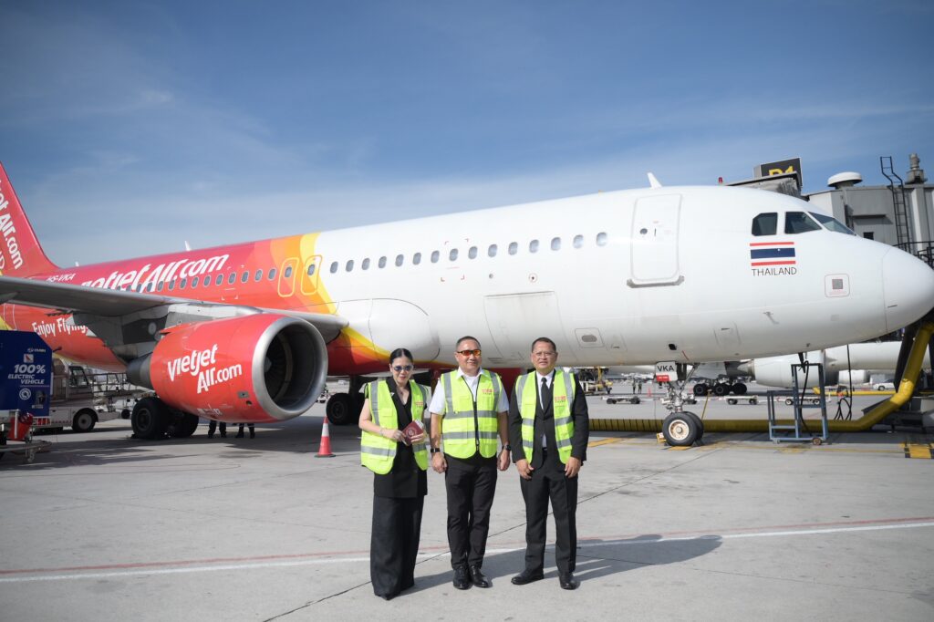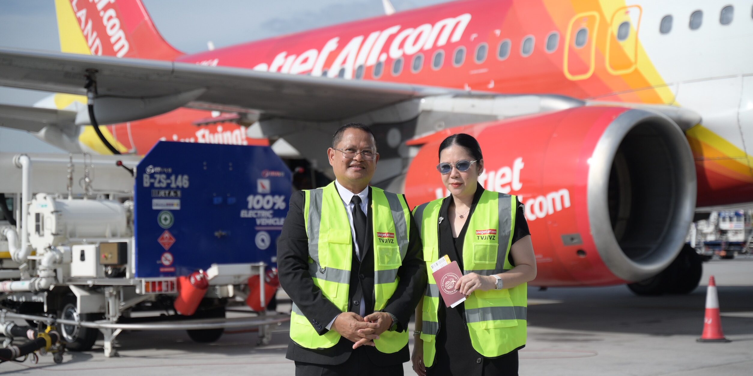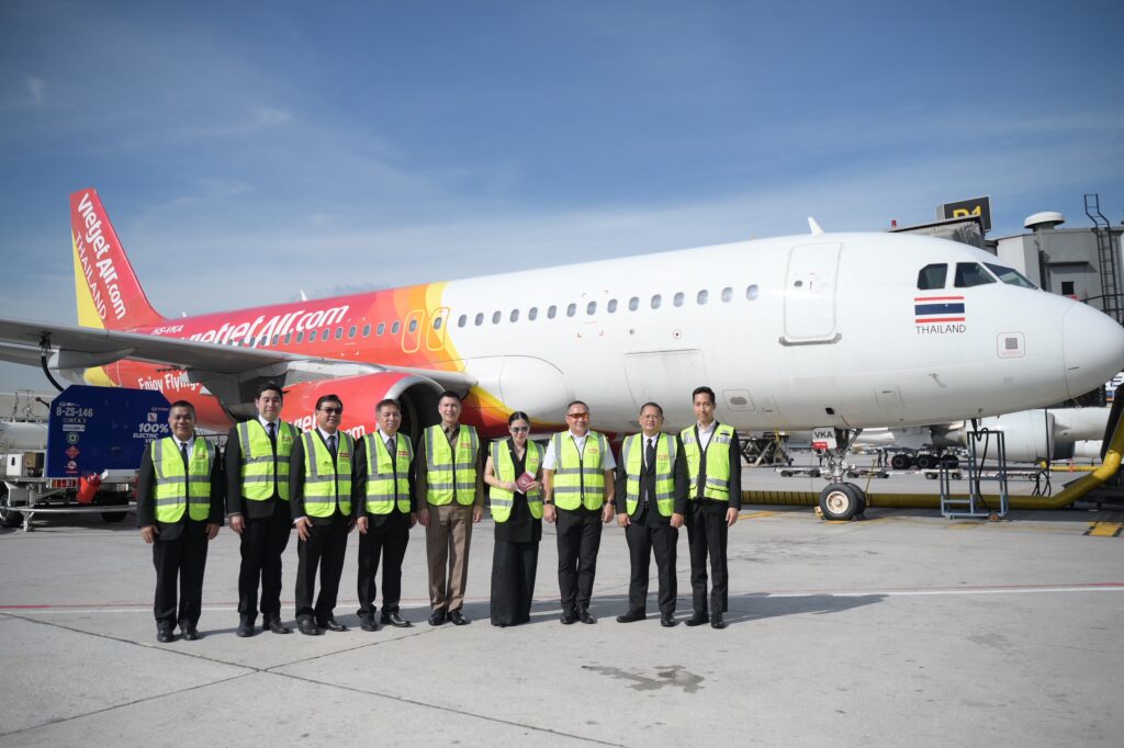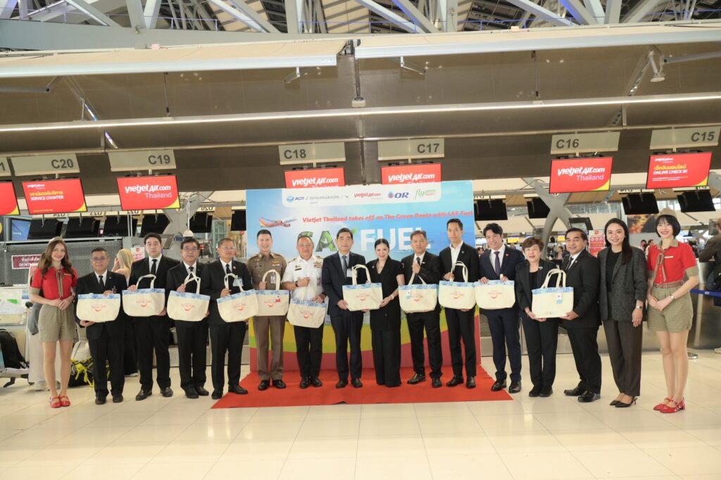สำหรับกิจกรรม “Green Route” เที่ยวบินปฐมฤกษ์การเติมน้ำมันเชื้อเพลิงอากาศยานแบบยั่งยืน (Sustainable Aviation Fuel: SAF) เส้นทางกรุงเทพฯ – ฟูก๊วก – กรุงเทพฯ ซึ่งจัดขึ้นโดย สายการบิน VietJet Airline ร่วมกับ บริษัท ปตท. น้ำมันและการค้าปลีก จำกัด (มหาชน) (OR) ณ ท่าอากาศยานสุวรรณภูมิ โดยมี H.E. Mr. Pham Viet Hung เอกอัครราชทูตสาธารณรัฐสังคมนิยมเวียดนามประจำประเทศไทย นายปัญญา ชูพานิช รองปลัดกระทรวงคมนาคม พลอากาศเอก มนัท ชวนประยูร ผู้อำนวยการสำนักงานการบินพลเรือนแห่งประเทศไทย (CAAT) นางสาวฐาปนีย์ เกียรติไพบูลย์ ผู้ว่าการ ททท.นางกรรณิการ์ เปรมประเสริฐ รองผู้อำนวยการท่าอากาศยานสุวรรณภูมิ นายสุขสวัสดิ์ สุขวรรณโณ รองอธิบดีกรมท่าอากาศยานด้านโครงสร้างพื้นฐาน กรมท่าอากาศยาน นายสุทธิศักดิ์ เทพตะขบ ผู้อำนวยการศูนย์ควบคุมการจราจรทางอากาศสนามบินกรุงเทพฯ พลตำรวจตรีคธาธร คำเที่ยง ผู้บังคับการตรวจคนเข้าเมือง 2 นายวรเนติ หล้าพระบาง ประธานเจ้าหน้าที่บริหาร บริษัท ไทย เวียตเจ็ท แอร์ จอยท์ สต๊อค จำกัด ม.ล. ณัฐสิทธิ์ ดิศกุล กรรมการผู้อำนวยการใหญ่ บริษัท บริการเชื้อเพลิงการบินกรุงเทพ จำกัด (มหาชน) นายไพศาล อุดมกุล วณิชย์ รองประธานเจ้าหน้าที่บริหารด้านธุรกิจเอนเนอร์ยี่โซลูชัน บริษัท ปตท. น้ำมันและการค้าปลีก จำกัด (มหาชน) นายณัฐพล เอกแสงศรี ผู้อำนวยการส่วนควบคุมทางศุลกากร ท่าอากาศยานสุวรรณภูมิ ให้เกียรติร่วมต้อนรับเที่ยวบินดังกล่าว