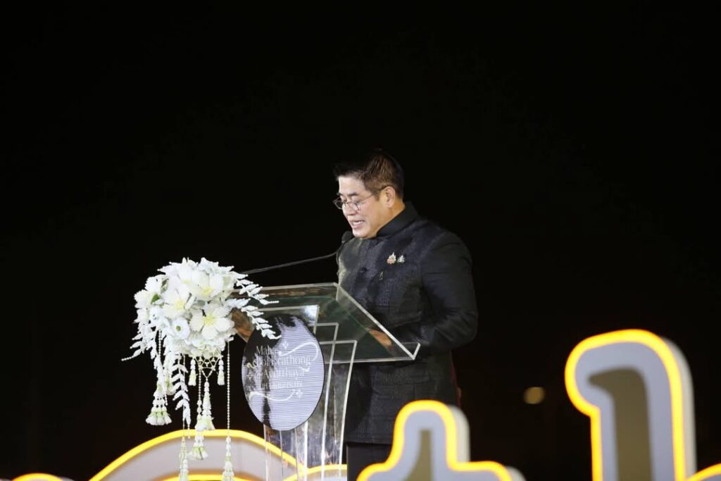 ร้อยเอก ธรรมนัส พรหมเผ่า รองนายกรัฐมนตรี และรัฐมนตรีว่าการกระทรวงเกษตรและสหกรณ์ กล่าวว่า งาน “Maha Loi Krathong @Ayutthaya” เป็นงานที่แสดงถึงเจตนารมณ์ของกระทรวงการท่องเที่ยวและกีฬา โดย การท่องเที่ยวแห่งประเทศไทย ในการส่งเสริมการท่องเที่ยวให้ประเทศไทยเป็นจุดหมายปลายทางของนักท่องเที่ยวจากทั่วโลก ด้วยการดึงจุดเด่นของประเทศไทยและยกระดับเทศกาลงานประเพณีของไทยให้เป็นที่รับรู้ในระดับนานาชาติ โดยใช้แนวทางการจัดงานที่มีมาตรฐานสากล เป็นมิตรกับสิ่งแวดล้อม ตอบโจทย์การท่องเที่ยวยุคใหม่ รวมถึงได้ปรับรูปแบบการจัดงานให้เข้ากับห้วงเวลาของการถวายความอาลัยและน้อมสำนึกในพระมหากรุณาธิคุณ สมเด็จพระนางเจ้าสิริกิติ์ พระบรมราชินีนาถ พระบรมราชชนนีพันปีหลวง โดยมีพื้นที่ให้ประชาชนได้แสดงความอาลัยถวาย และรับชมพระราชกรณียกิจที่สร้างประโยชน์สุขให้แก่ปวงชนชาวไทย บรรยากาศของงานเทศกาลลอยกระทงในครั้งนี้จึงสง่างาม สมพระเกียรติ และเป็นการจัดงานเทศกาลระดับนานาชาติที่สามารถส่งเสริมภาพลักษณ์การท่องเที่ยวของประเทศไทยอย่างดียิ่ง ซึ่งจะสร้างคุณค่าและมูลค่าในด้านการท่องเที่ยว และสร้างความภาคภูมิใจให้กับคนไทยทุกคน