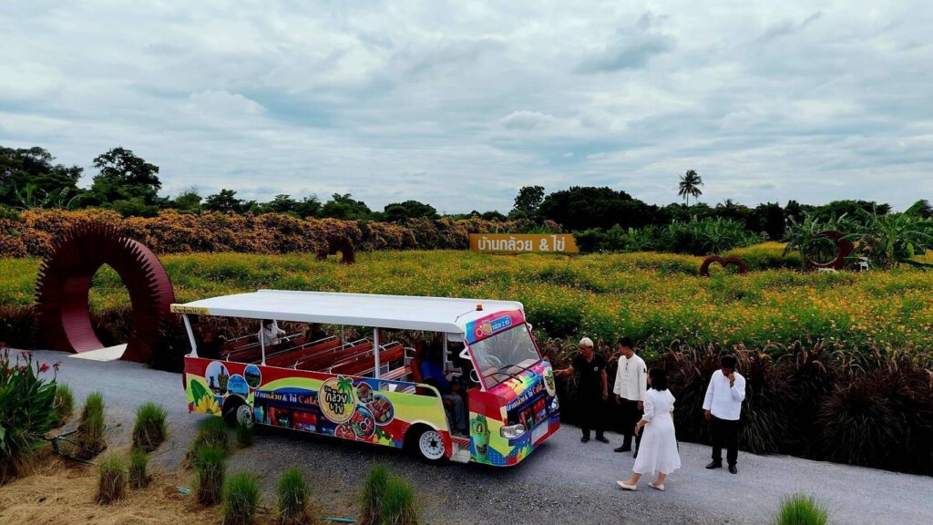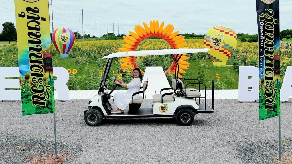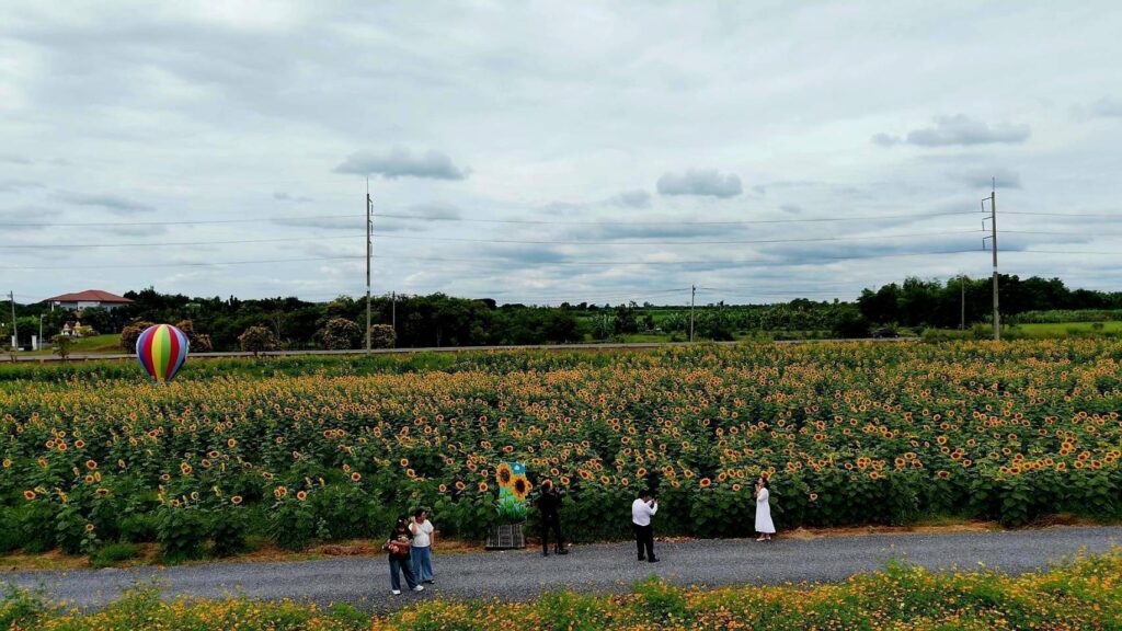 **** ด้าน นายธนณัฐ อาจิณกิจ นายอำเภอพัฒนานิคม จังหวัดลพบุรี กล่าวว่า….ในพื้นที่อำเภอพัฒนานิคม จังหวัดลพบุรี เริ่มเข้าสู่ฤดูการท่องเที่ยวอย่างเป็นทางการ โดยเฉพาะช่วงที่น้ำเต็มเขื่อน ประกอบกับการรถไฟแห่งประเทศไทย ได้จัดขบวนรถไฟเที่ยวพิเศษ มีเกษตรกรปลูกทานตะวันทั้งด้านการเกษตร และ ด้านการท่องเที่ยว รวมกันเกือบ 1,000 ไร่ ซึ่งจะพากันทยอยออกดอกเบ่งบานไม่พร้อมกัน แต่จะมีทยอยบานให้นักท่องเที่ยวได้ชม ตั้งแต่เดือนพฤศจิกายน ต่อเนื่อง ไปจนถึง เดือนมกราคม ปีหน้า ……. โดยเฉพาะที่ ทุ่งทานตะวัน บ้านกล้วย & ไข่ Cafe แห่งนี้ เนื่องจากมีการ แบ่งสลับพื้นที่การปลูกเป็นอย่างดี….