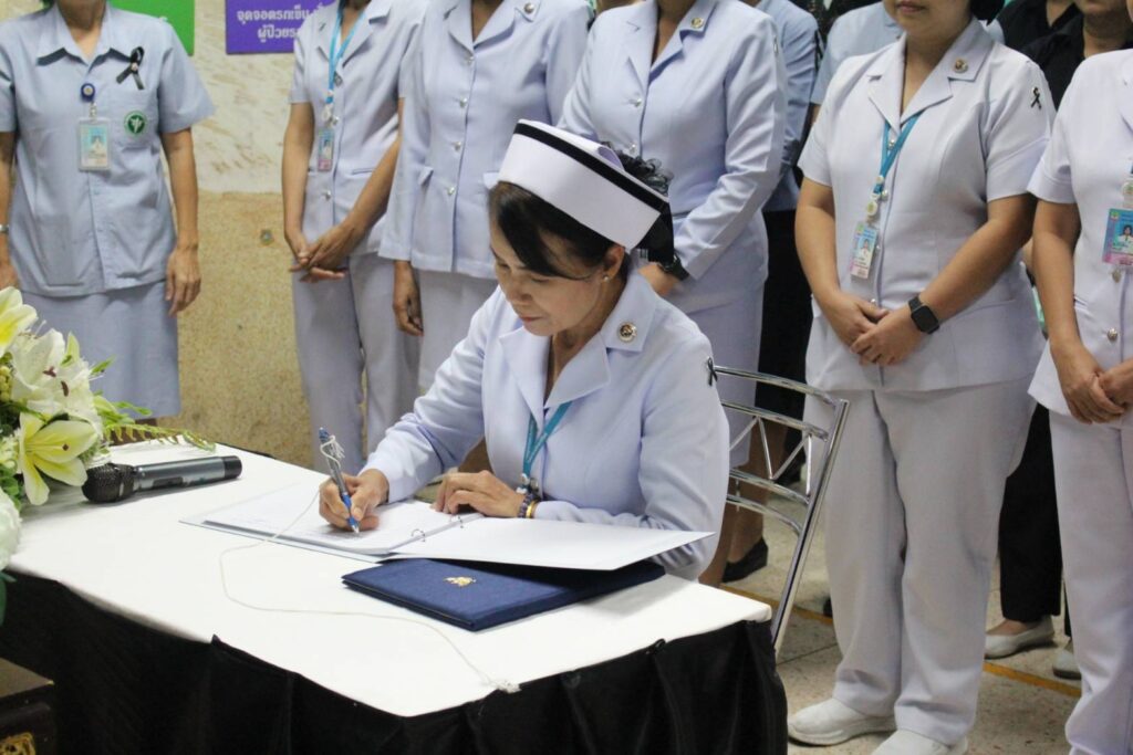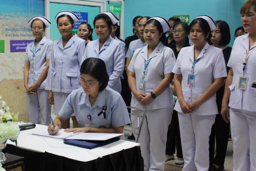 วันที่ 7 พฤศจิกายน 2568 ที่โรงพยาบาลประชาธิปัตย์ อำเภอธัญบุรี จังหวัดปทุมธานี นายธัชณรงค์ ธัญญศรี ผู้อำนวยการโรงพยาบาลประชาธิปัตย์ พร้อมด้วยคณะกรรมการบริหาร และเจ้าหน้าที่โรงพยาบาล ร่วมประกอบพิธีลงนามถวายความอาลัย เบื้องหน้าพระฉายาลักษณ์ สมเด็จพระนางเจ้าสิริกิติ์ พระบรมราชินีนาถ พระบรมราชชนนีพันปีหลวง เพื่อน้อมรำลึกในพระมหากรุณาธิคุณอันหาที่สุดมิได้