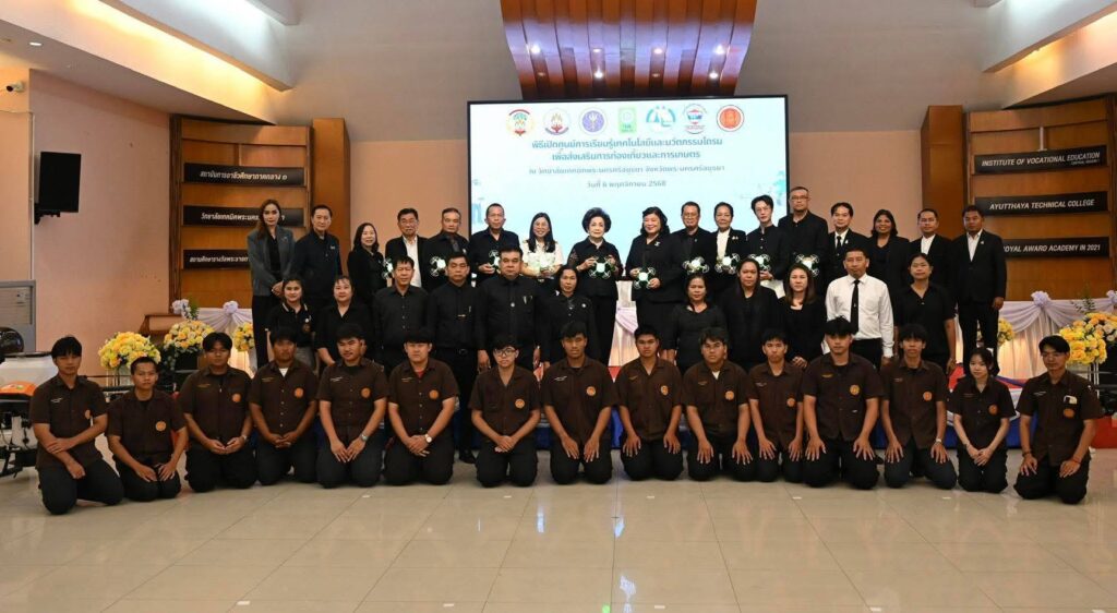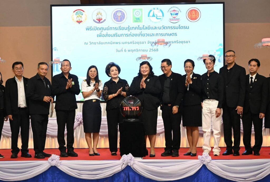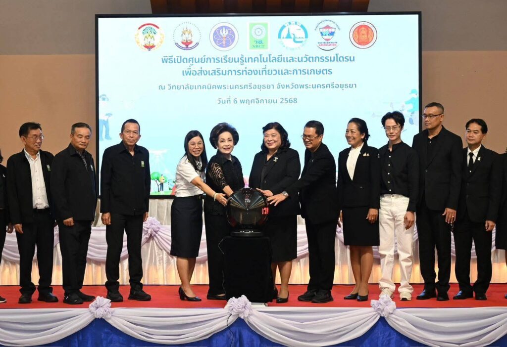 เมื่อวันที่ 6 พฤศจิกายน 2568 สำนักงานการวิจัยแห่งชาติ (วช.) กระทรวงการอุดมศึกษา วิทยาศาสตร์ วิจัยและนวัตกรรม (อว.) โดย ดร.วิภารัตน์ ดีอ่อง ผู้อำนวยการสำนักงานการวิจัยแห่งชาติ (ผวช.) เป็นประธานในพิธีเปิด “ศูนย์การเรียนรู้เทคโนโลยีและนวัตกรรมโดรนเพื่อส่งเสริมการท่องเที่ยวและการเกษตร” โดยมี นางสมทรง พันธุ์เจริญวรกุล นายกองค์การบริหารส่วนจังหวัดพระนครศรีอยุธยา ร่วมในพิธีเปิด พร้อมด้วยนางสาวมยุรี ศรีระบุตร ผู้อำนวยการวิทยาลัยเทคนิคพระนครศรีอยุธยา นางสาวนปภา สังฆโสภณ รองผู้อำนวยการการท่องเที่ยวแห่งประเทศไทยสำนักงานพระนครศรีอยุธยา อาจารย์พิศิษฐ์ มิตรเกื้อกูล นายกสมาคมกีฬาเครื่องบินจำลองและวิทยุบังคับ พร้อมด้วยคณะผู้บริหาร ภาคีเครือข่าย สื่อมวลชน และแขกผู้มีเกียรติ เข้าร่วมในพิธี ณ วิทยาลัยเทคนิคพระนครศรีอยุธยา จังหวัดพระนครศรีอยุธยา