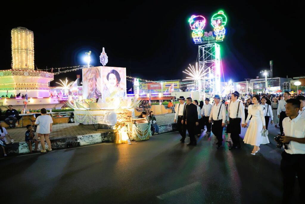 และในเวลา 20.00 น.เป็นพิธีเปิดงานโดย ว่าที่ร้อยตรี ทรงพล แป้นแก้ว รองผู้ว่าราชการจังหวัดลพบุรี เป็นประธานเปิดงานฯ โดยก่อนพิธีเปิด ประธานได้นำผู้มาร่วมงานยืนถวายความอาลัยและน้อมรำลึกในพระมหากรุณาธิคุณอันหาที่สุดมิได้ เพื่อถวายเป็นพระราชกุศลแด่ สมเด็จพระนางเจ้าสิริกิต์ พระบรมราชินีนาถ พระบรมราชชนนีพันปีหลวง เป็นเวลา 1 นาที