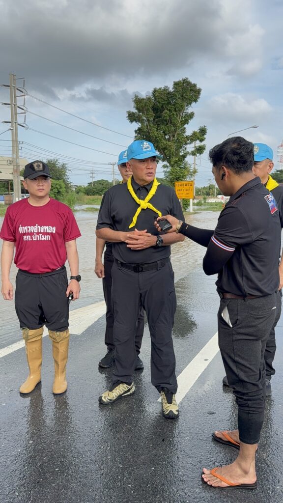 โดยมี นายชวนินทร์ วงศ์สถิตจิรกาล ผู้ว่าราชการจังหวัดอ่างทอง พร้อมด้วยหน่วยงานที่เกี่ยวข้องร่วมบรรยายสรุปสถานการณ์ในพื้นที่ พร้อมประเมินความแข็งแรงของแนวคันดิน และจุดป้องกันน้ำล้นตลิ่งในหมู่บ้านและชุมชนที่มีความเสี่ยง